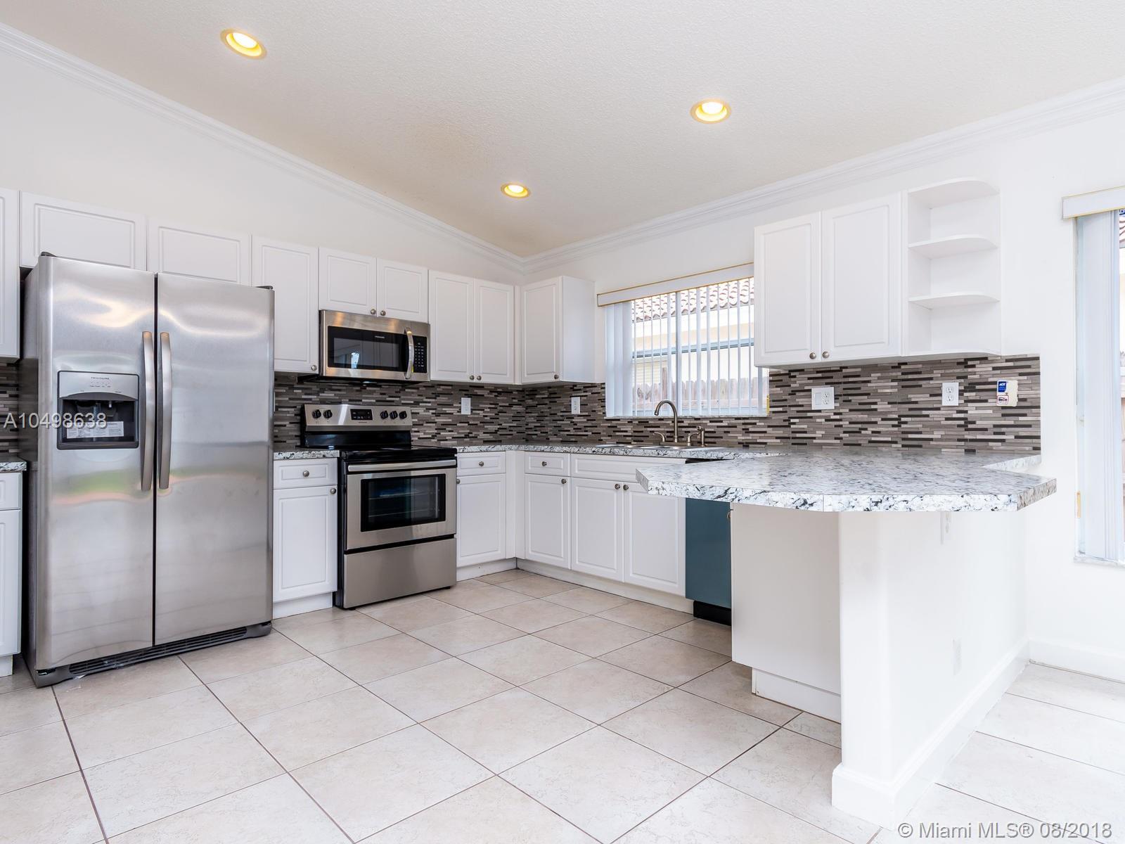 Just Reduced! Tastefully renovated 3/2 in a sought after gated community in Miramar. Split floor plan, offering great privacy to the master suite. Master offers nice closet space, his & her sink, separate shower & tub. Divided living room, family room, & formal dining w/sliding doors, which makes the home feel spacious & bright throughout. Huge eat updated eat-in kitchen, w/ plenty of cabinets & fantastic counter space & breakfast bar. Brand new stainless steel appliances still under warranty! Freshly painted inside & outside. Crown moldings, remodeled bathrooms. Fully fenced in yard w/sprinklers ideal for entertaining.Hurricane shutters, 5 yr old AC rand new water heater, community play ground low hoa fees! close to shopping & FIU & BC campus.Shows like a model priced to sell. WONT​​‌​​​​‌​‌​​​​‌‌​‌​​​​‌‌​​‌‌​​‌‌ LAST!