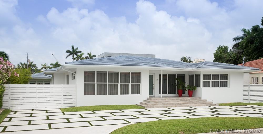 Completely Renovated in 2018 with a classic – style exterior, modernized interior and a tropical garden. This warm and welcoming design home is situated on a double lot (9,677 sf) on the prestigious and quiet neighbor of Surfside. Half block from Bal Harbour shops, three block from the beach and walking distance to restaurants. This luxury home features an open floor plan with a living room, formal dining, a family room and a chef’s kitchen with breakfast bar. 5 bedrooms and 4-1/2 bathrooms; a guest house/pool cabana; a pool and a tropical garden that wraps around the entire house providing beautiful green views !!! Perfect location for families. A+ rated school of Bal Harbour.