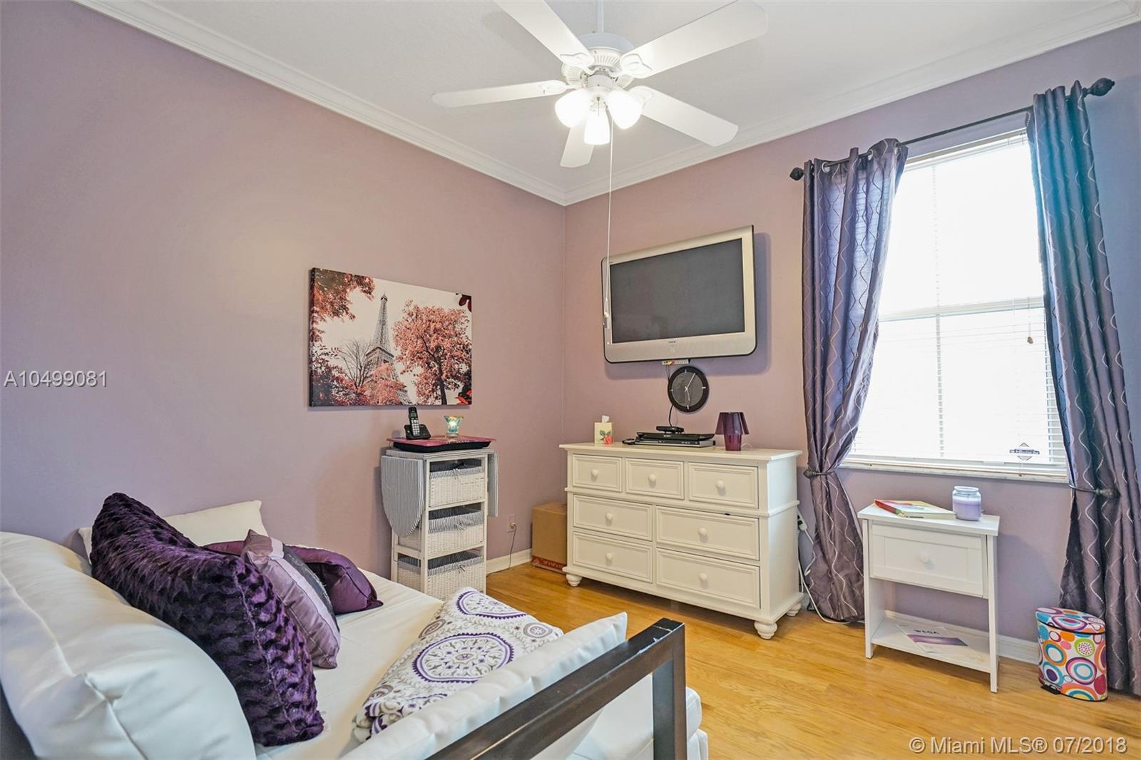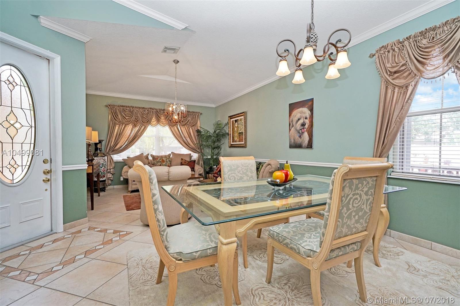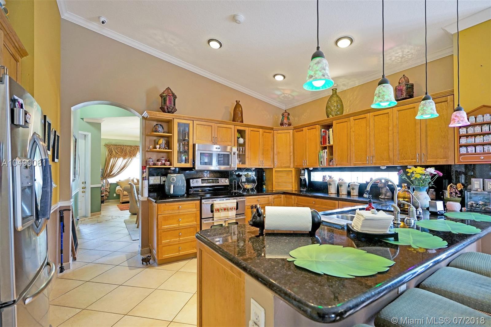 Gorgeous 4 bedrooms 2 bath house in gated community, oversized corner lot, title throughout, vaulted ceilings, crown molding, wooden cabinets with granite counter tops, huge master bedroom with double doors, big walking closet, security cameras, accordion shutters, spectacular patio area heated salt water pool with waterfall, Jacuzzi, exterior kitchen, BBQ, sauna, palm trees, ideal to entertain family and friends. Every little detail you can think of this house has it. Please call today to schedule an appointment.