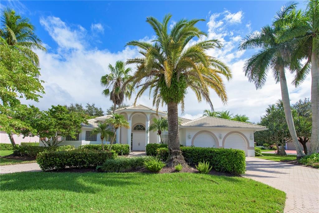 Warmth, light & charm describe this home on tropical cul de sac street of custom homes in prestigious Eagle Trace. Durable terra cotta stone tile living areas & hi end laminate bedrooms. French doors, clerestory & palladium windows, radius walls, & volume 14' flat ceilings. Desirable split bedroom floor plan & luxurious master suite, large bay window sitting area with built-in bench. Lush landscaping surround screened pool, raised spa & patio. 4 column portico entry & enormous circular paver driveway.