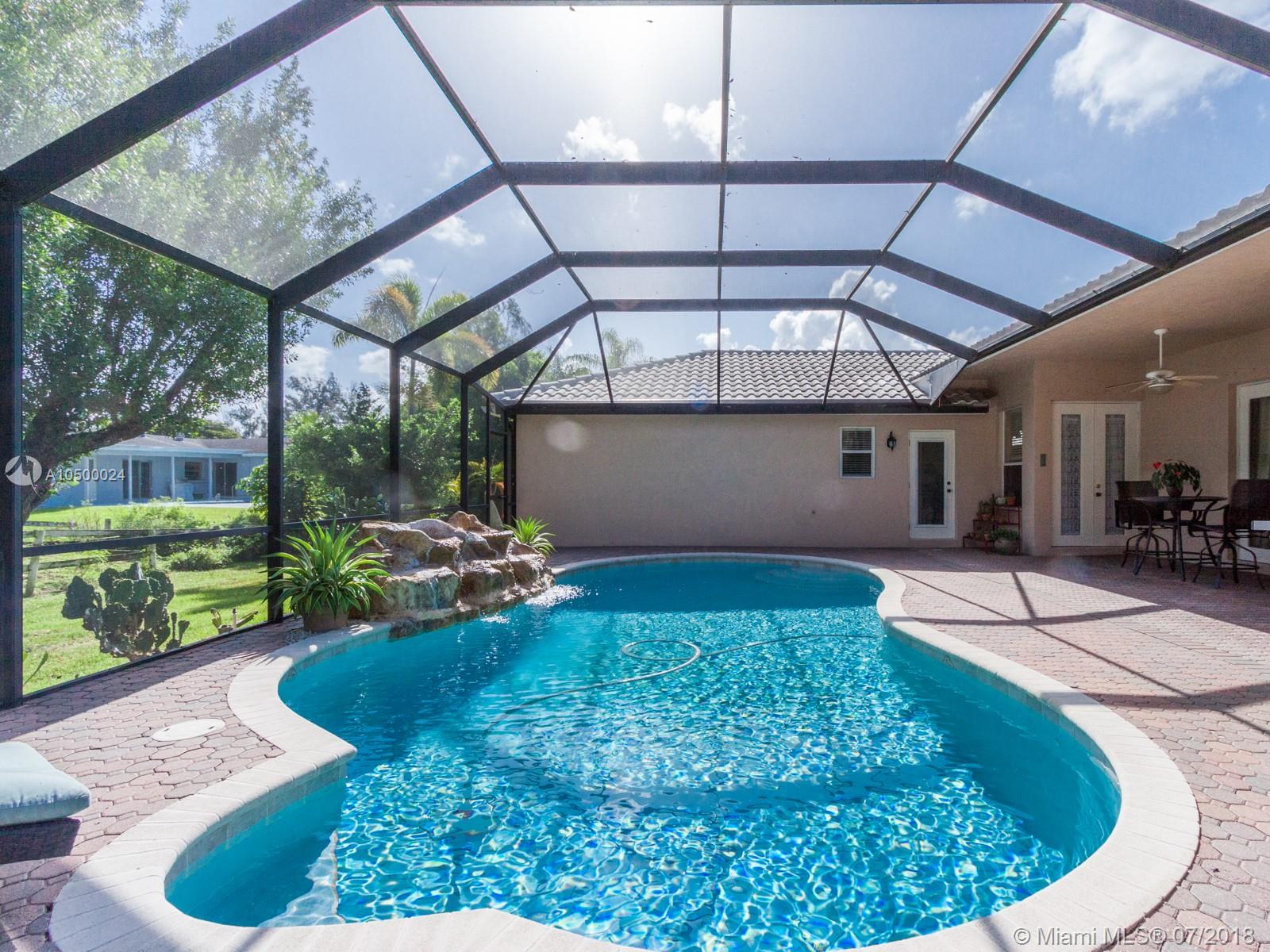 This beauty in Plantation Acres is located on a private cul-de-sac tree-lined street. Enjoy easy living, plenty of natural lighting, an open floor plan 5 bedrooms and 2.5 baths. The original owners carefully selected and crafted every quality detail. Stainless steel appliances, new Mohawk porcelain tile in all bedrooms, updated master bath, with plantation shutters, remodeled cabana bath, and tile flooring throughout the main living area. French doors open to luxurious salt chlorinator pool with rock waterfall, setting the stage for year round entertaining. Large 2 car garage with extra attic storage and pull down stairs. Brick pavers in driveway & pool area. Enjoy the sunset in absolute peace and tranquility. Priced to sell. Schedule your private showing! So much more to see.