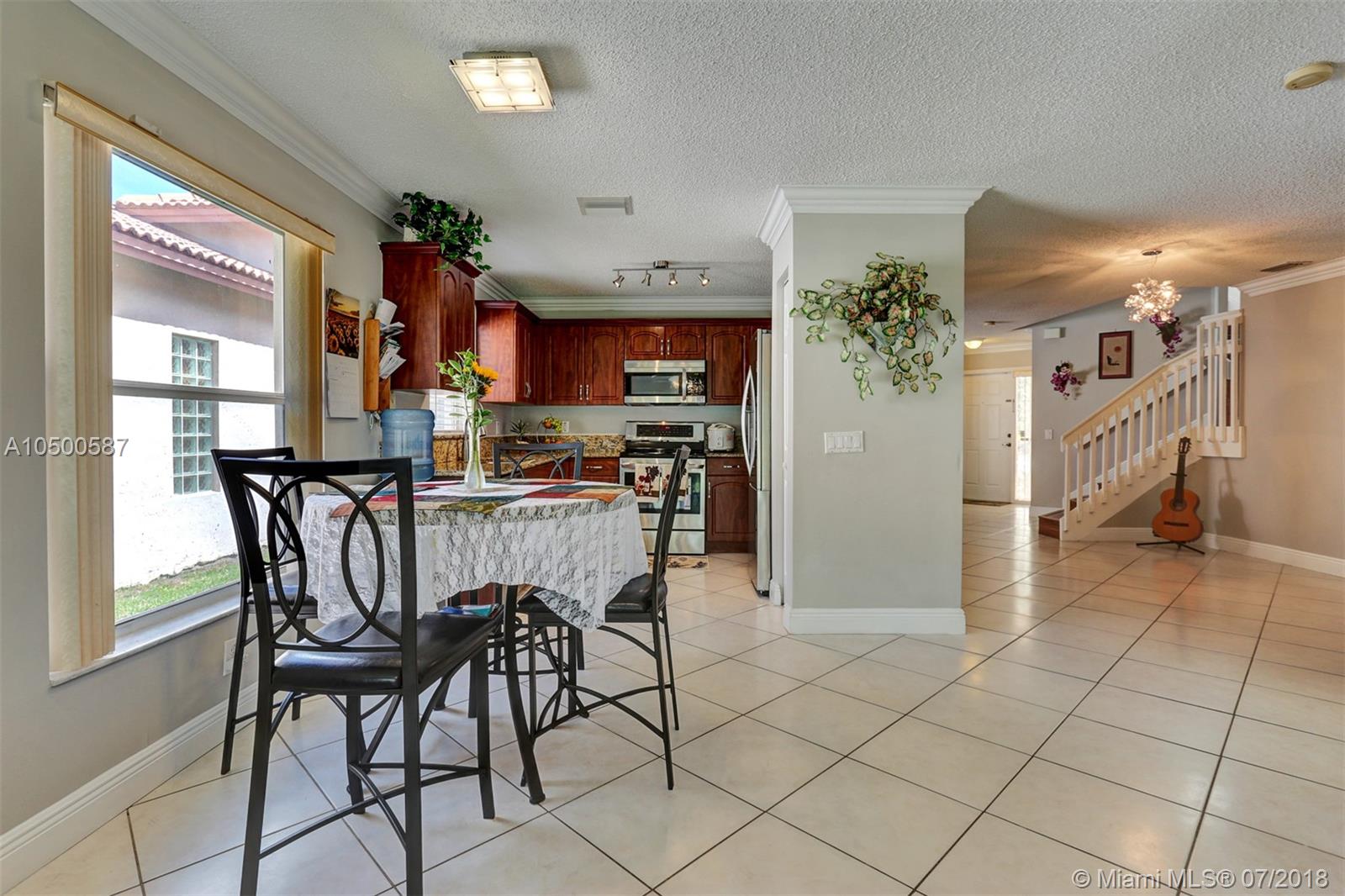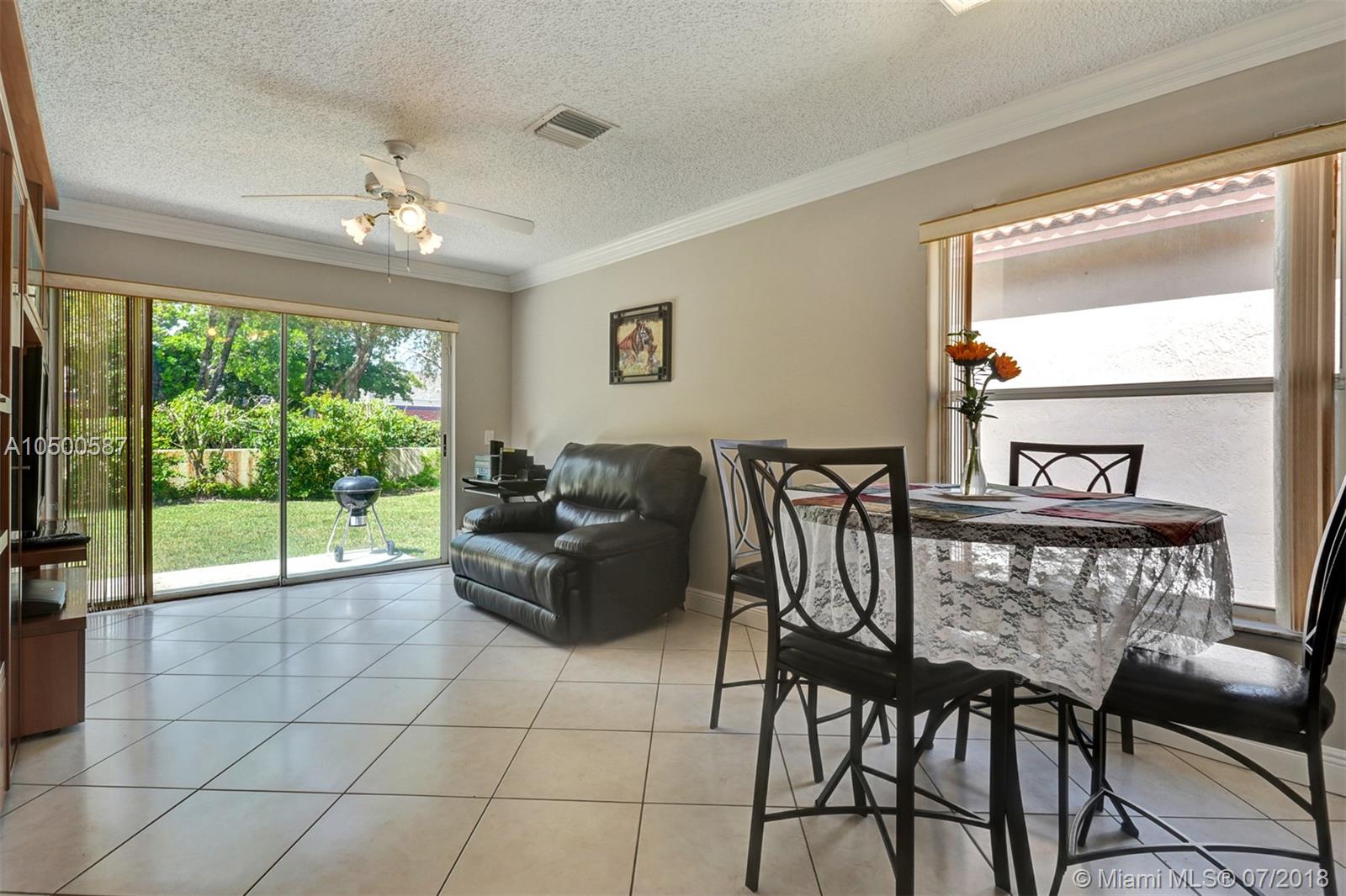 Wonderful home in Turtle Run. This 3 bedroom property features a bright and open floor plan with tile throughout the 1st floor. Gorgeous remodeled kitchen with Granite tops, Stainless Steel appliances and wood cabinets. Eat-in kitchen leading to a large Family Room. Master Bedroom downstairs with sliding doors to the back yard. Large Master bathroom, and one huge walk-in closet! Beautiful higher end laminate flooring throughout the entire 2nd floor, generous sized bedrooms, laundry area upstairs as well. Great size fenced back yard. Hurricane panels downstairs and Accordion upstairs. Low HOA , amenities include pool, security gate and patrol. Greta home and priced to sell!