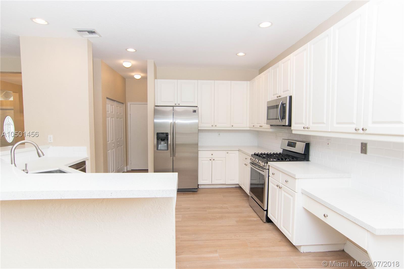 Superb 5 BR, 3 Bath home in spectacular manned-gated resort community of Pembroke Falls. Remodeled gourmet eat-in kitchen, quartz counters, new stainless steel appliances. Split bedroom layout, one bedroom w/full bathroom downstairs, formal living rm, formal dining rm, large open family rm, 2 car garage, spacious laundry rm, newer dual zone A/Cs. Enjoy the best of Florida living w/double sliding glass doors opening to huge screened-in covered patio, fully fenced, oversized yard. Community resort amenities incl pool, fitness, clubhouse, tennis, 4 manned gates, much more. Excellent grade A Pembroke Pines schools plus super charter & parochial schools nearby. Close to shopping, dining, hospital, parks & I-75 for easy commutes in every direction. Security, cable & internet incl in HOA frees.