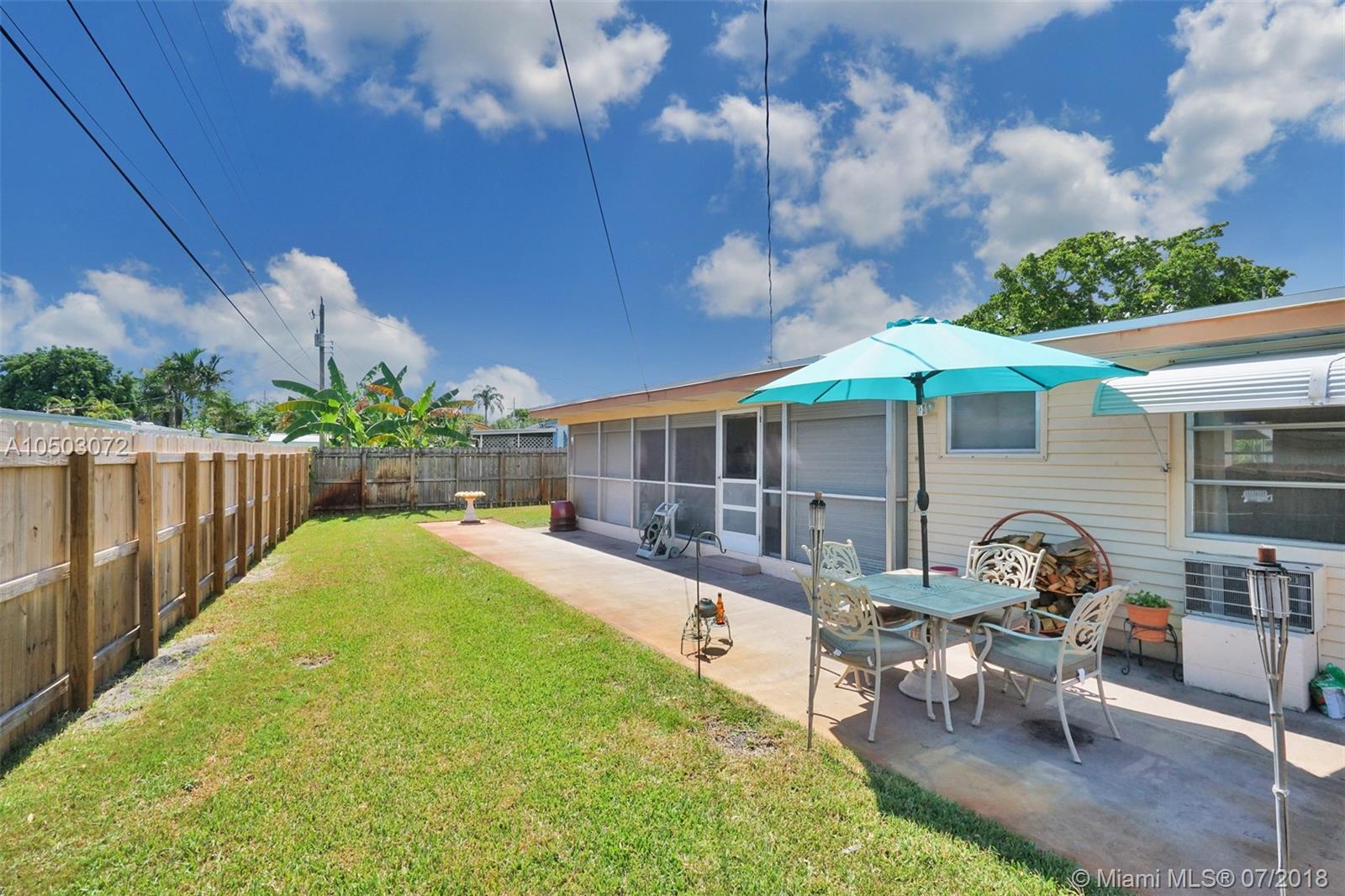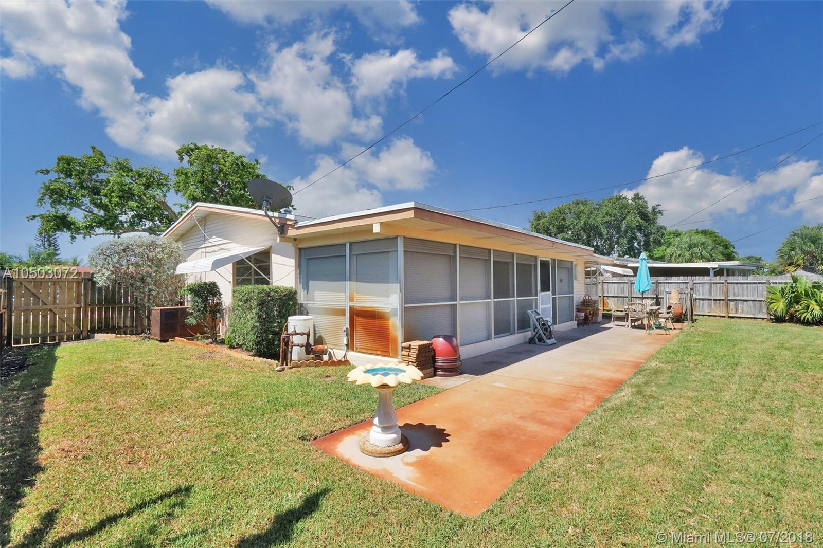 This beautiful Pompano Beach home is wrapped in warmth and natural light. The classic 2 bedroom floor plan boasts a new roof, updated electrical, spacious kitchen & a light and bright Florida room/extra room. The pristine lot has a fully fenced back yard, screened patio with shutters, car port and a covered front porch. This prime location is close to Federal Highway, shopping, restaurants & the beach!