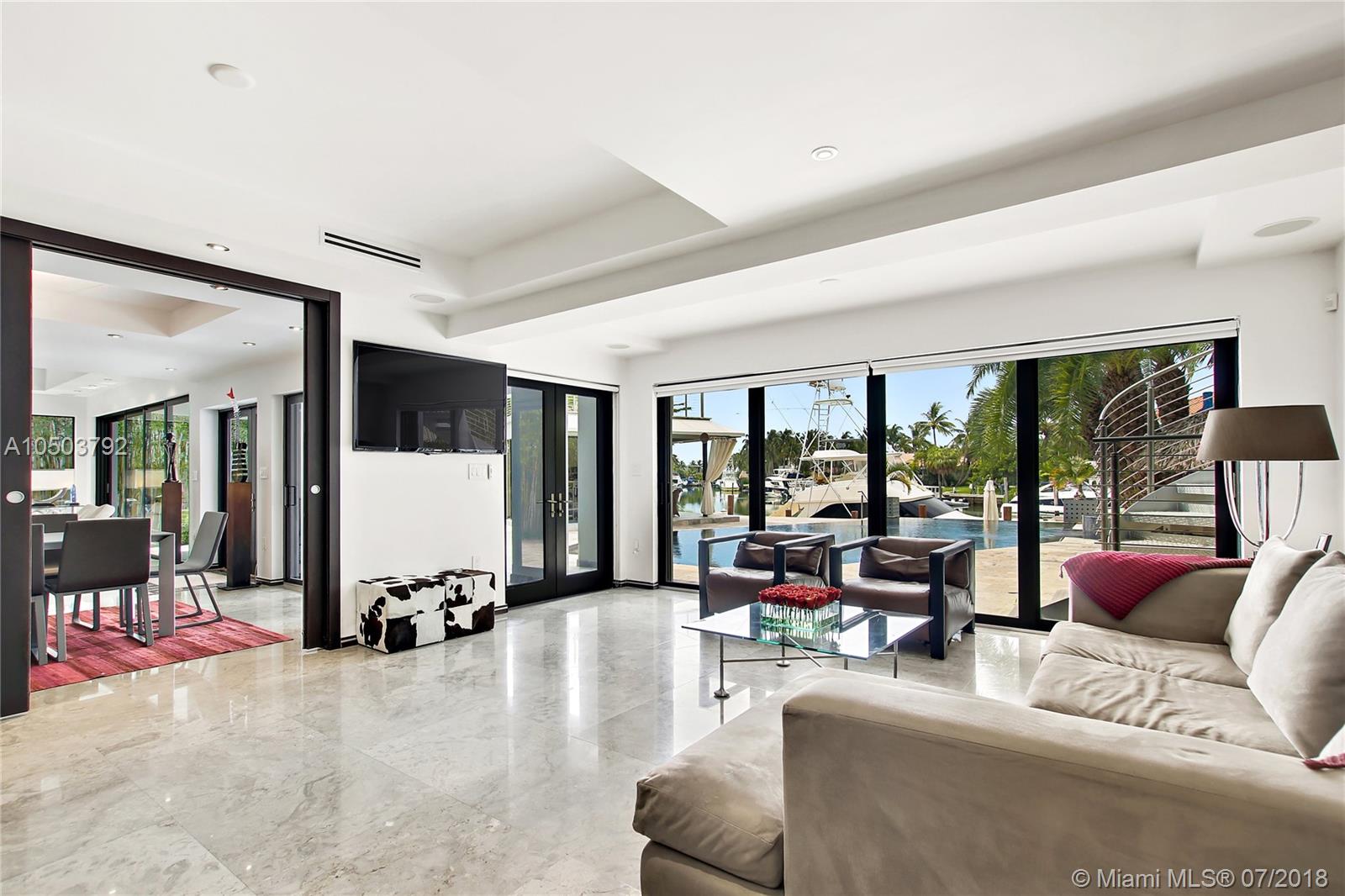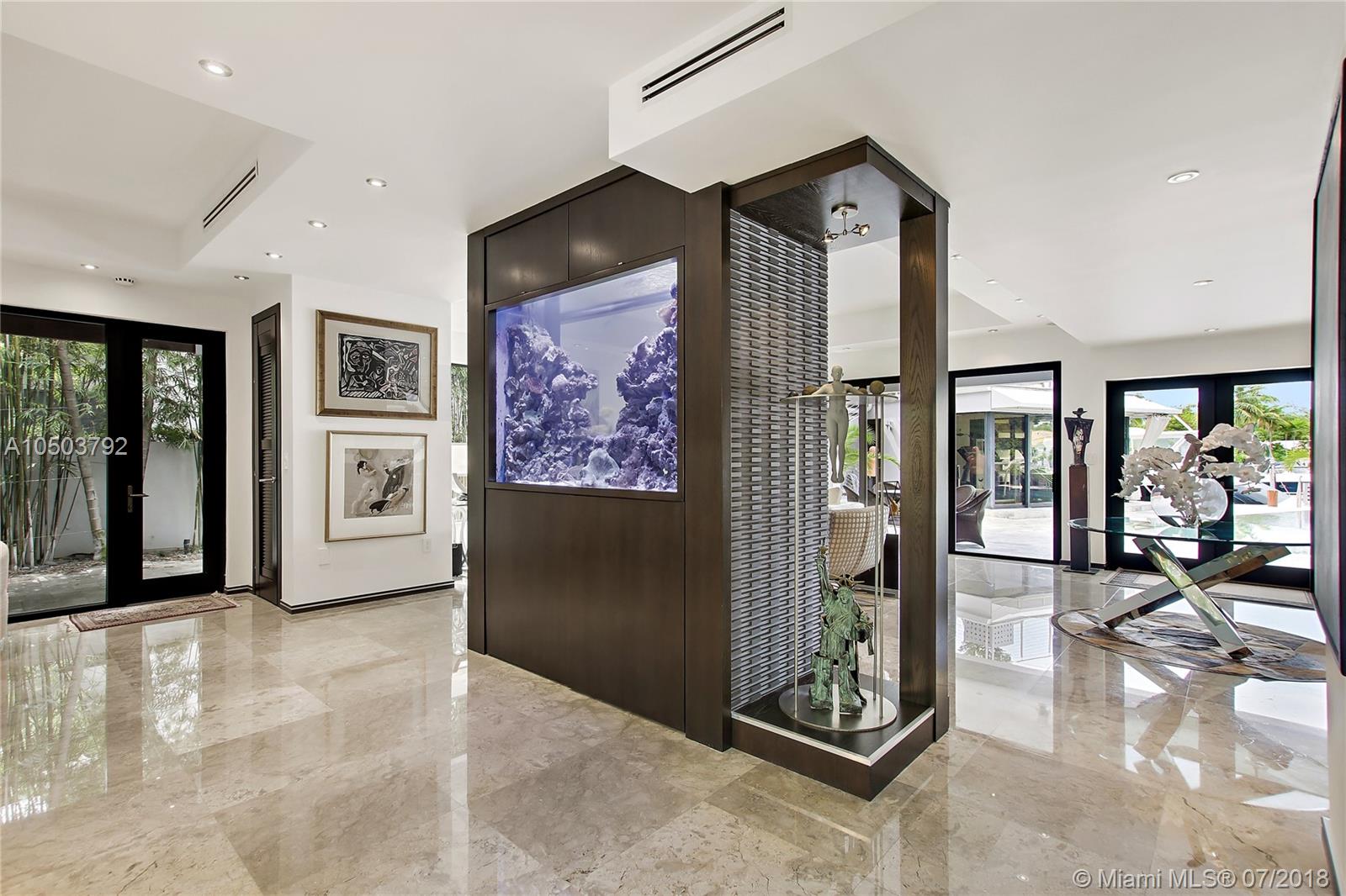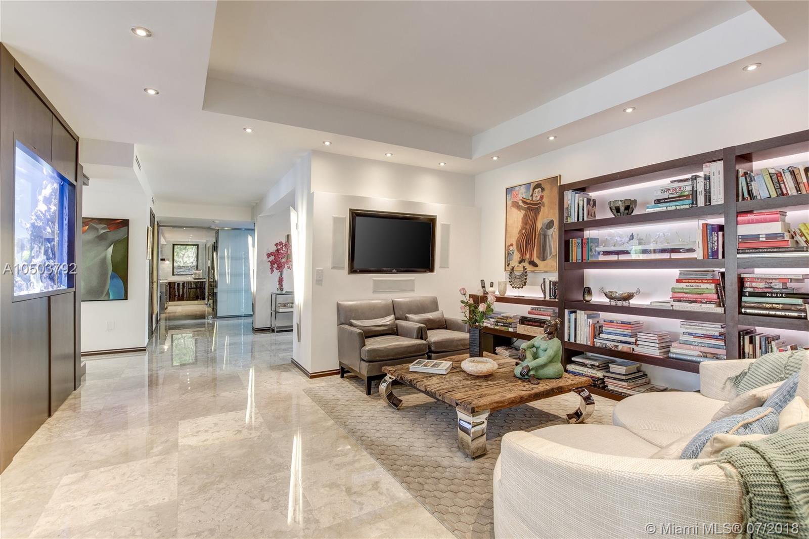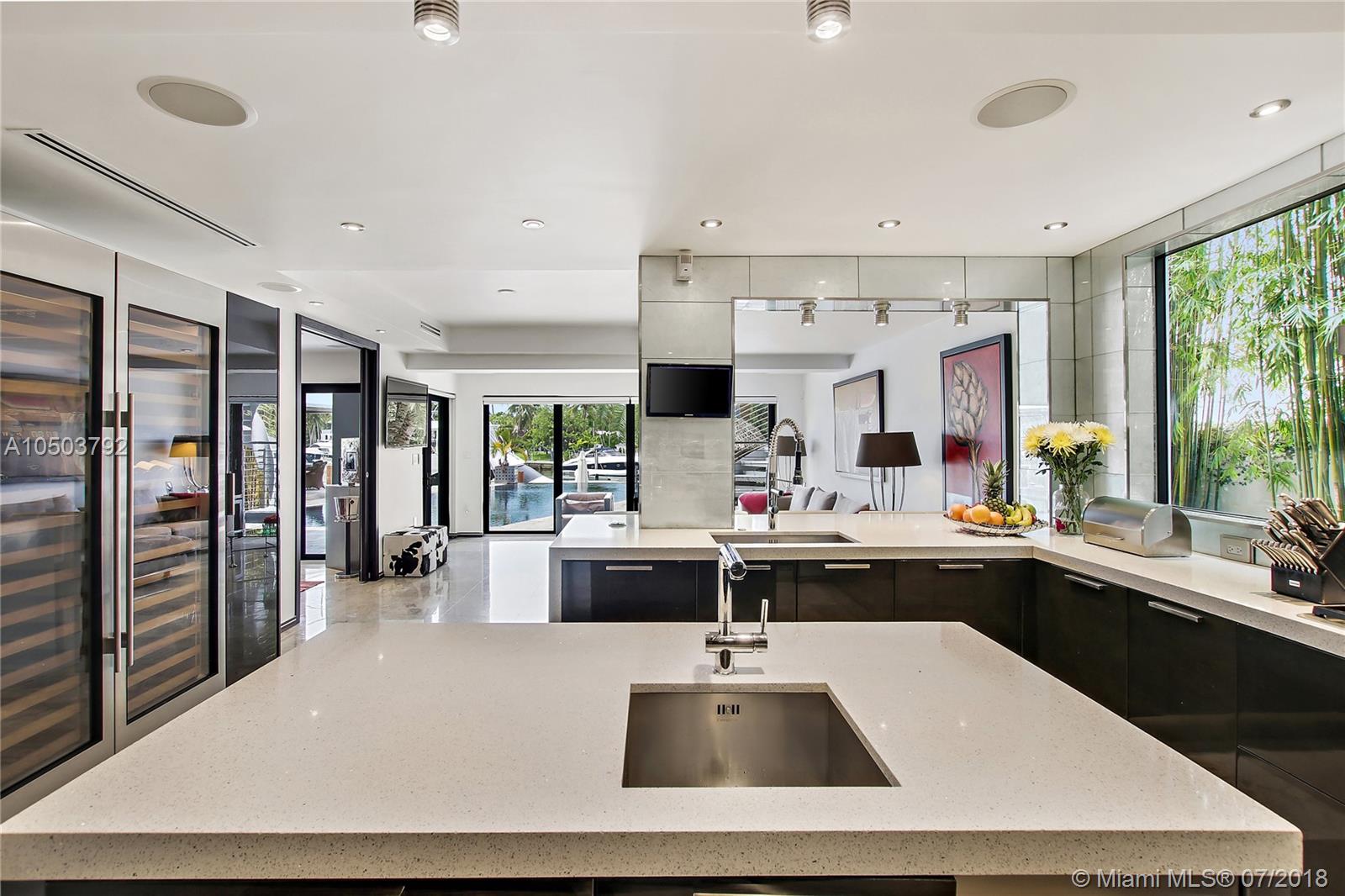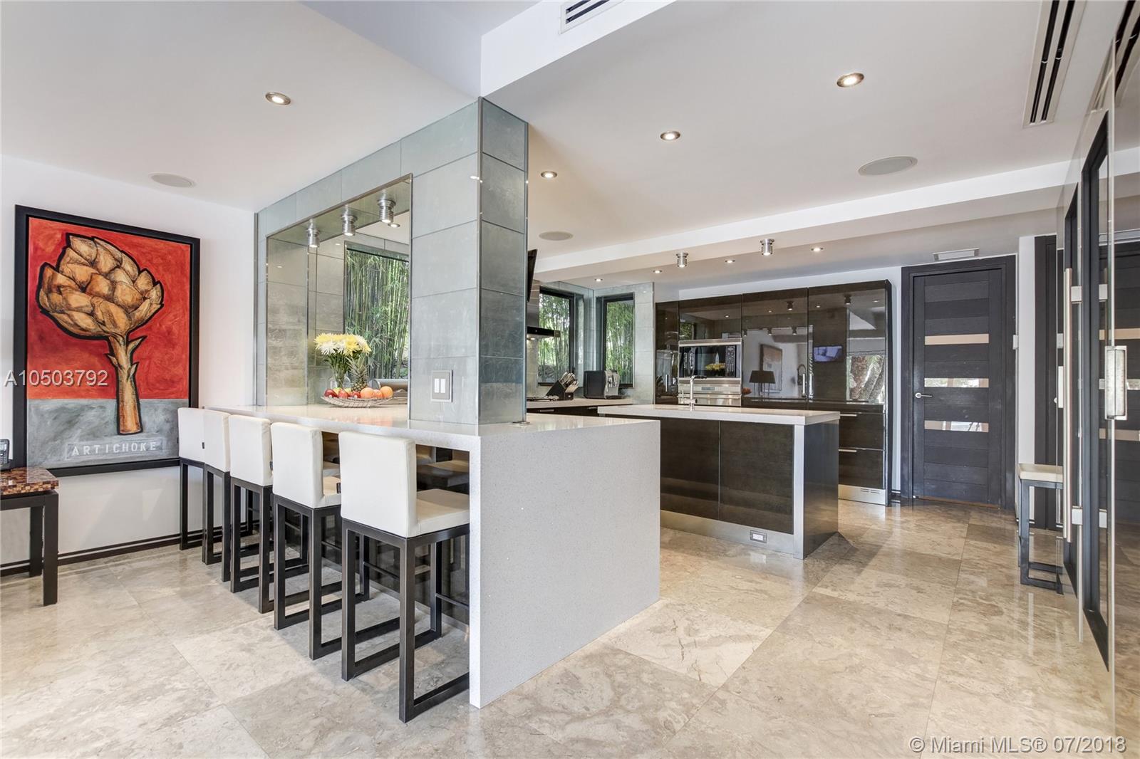 Featuring The Island House, the jewel of Key Biscayne! Nestled on a quiet street & truly a boaters paradise, this stunning Modern Marvel features over 6300 sq ft of the highest in quality finishings, design, appliances & building materials. No expense was spared in construction from imported marble & wood floors, glass cased wine cellar, home generator, impact doors & windows & a roof top terrace with breath-taking views. Bask in the lifestyle this estate offers & enjoy a moments' drift into the open ocean for a day at sea.Water features begin from the doorsteps with a running waterfall, a 500 gallon salt water fish tank & all the way through to your private dock. Pool house complete with full gym, bathroom & sundeck. Garage with 2 lifts for 4 cars.
