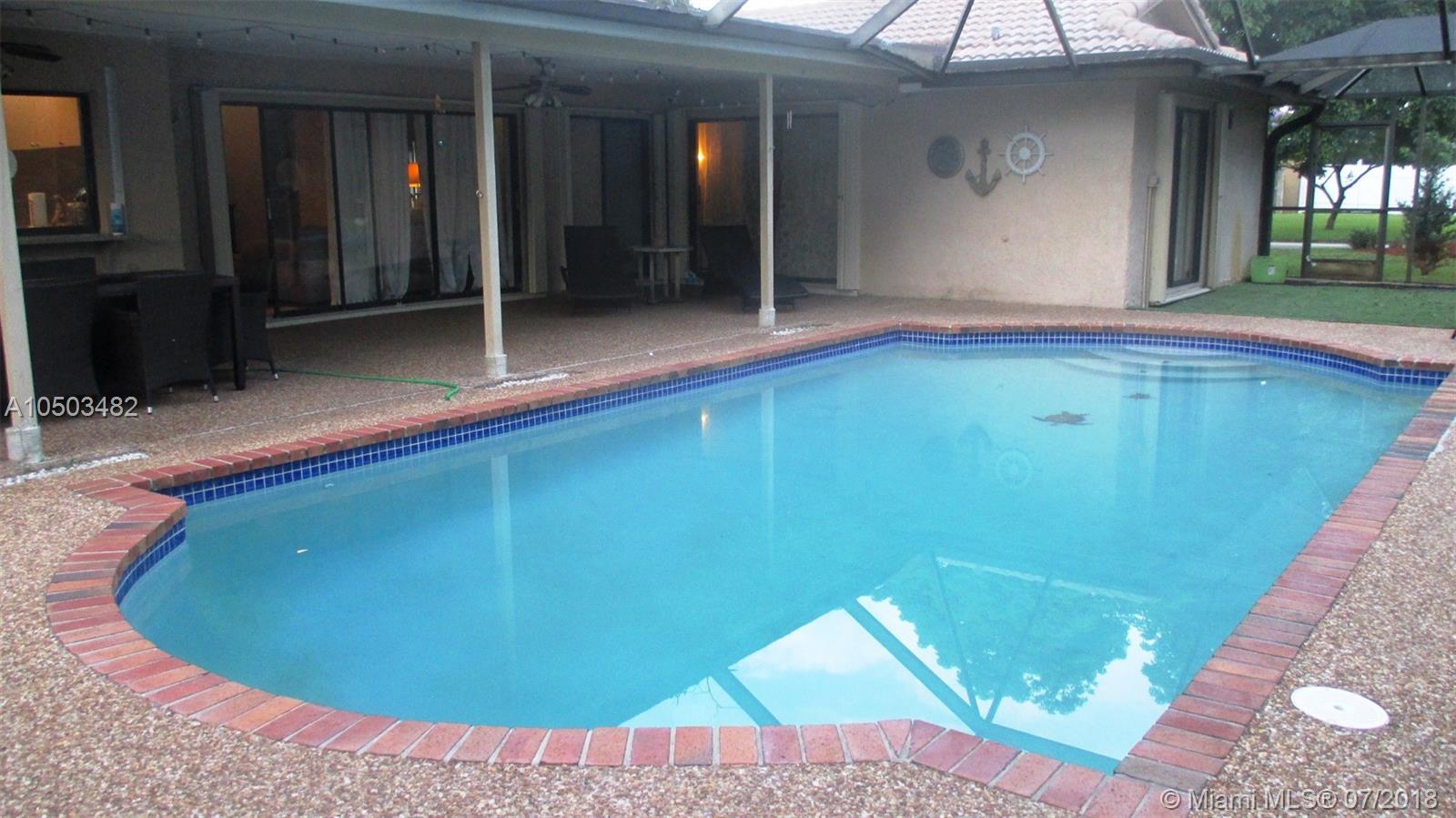 Priced to sell! Large corner lot with tropical landscaping, very clean, spacious 4 bedroom 2 bath home, a Foyer entrance, vaulted ceilings, wood laminate floors and tile, Large eat in kitchen w/cooking Island. Large Master Bedroom with a walk in closet, Master bath has dual sinks, and cabana door, 2 zone A/C, tankless water heater, Laundry room with Samsung washer & dryer, custom mirrors, Great home for entertaining, Screened salt water pool with oversize patio, Hurricane shutters, mostly accordion, and Hurricane rated garage door. S- tile roof, Driveway can hold 4 cars, Quiet street located on a cul de sac. Great location, walk to Coral springs Mall, close proximity to roadways, good schools, parks, public transportation, houses of worship.