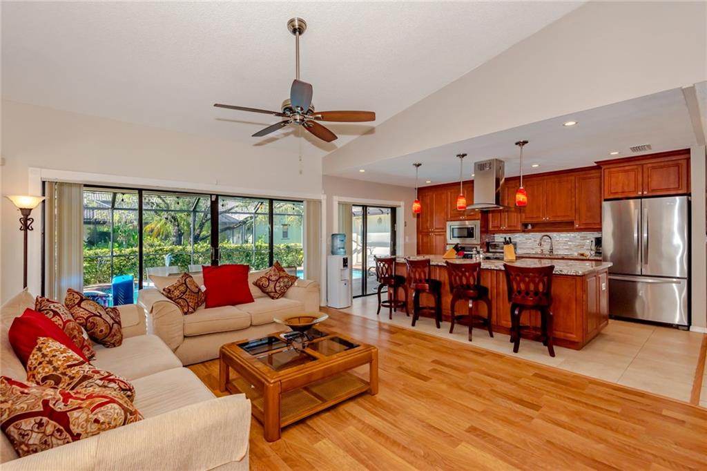 MOVE RIGHT IN this 4 bedroom 2 bath home offering a fabulous updated kitchen with SS appliances and granite overseeing the screened patio/ pool area and family room. Updated Master Bath. Roof replaced in 2008,newer hot water heater and AC. Laminate and tile flooring. Hurricane shutters. Stacked bedroom plan. Close to everything-parks, shopping, restaurants and grocery stores.