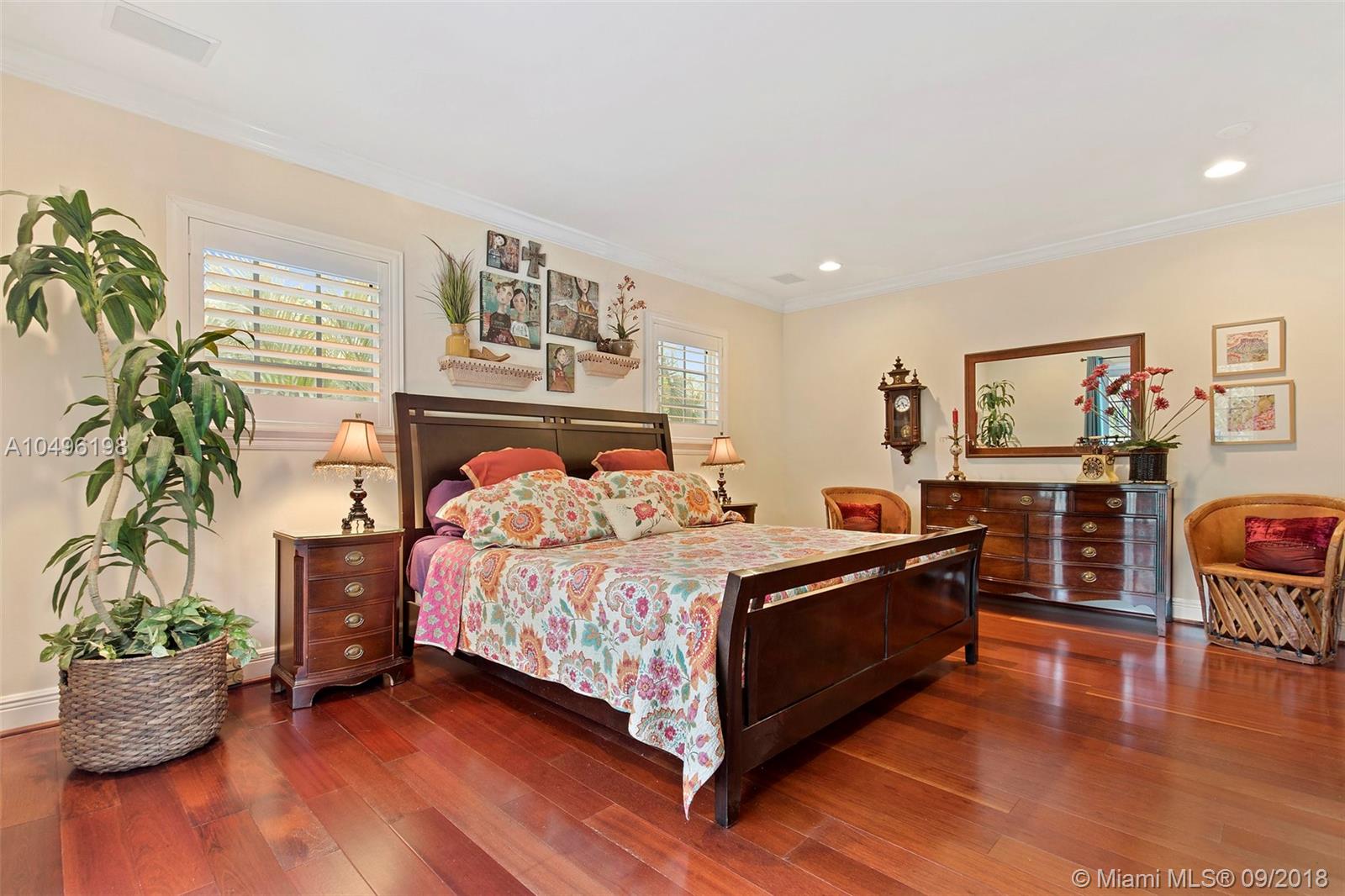 Elegance abounds in this home features expansive living spaces and gleaming hardwood flooring. The living room has a cozy wood burning fireplace & spacious dining area perfect for entertaining. Create your culinary delights in the gourmet kitchen offering extensive cabinetry and features stainless steel appliances including double wall ovens, built-in dishwasher and Samsung 4 Door Flex refrigerator & has a walk-in pantry. With a split floor plan, the entire upstairs is dedicated for the master suite offering full spa bath with jetted tub, double vanity sinks, walk-in closet and private balcony. New hot water heater, LED lighting, GACO silicone roof coating professionally applied September 2017, plantation shutters and LED lighting. A mere few blocks away from Miracle Mile.