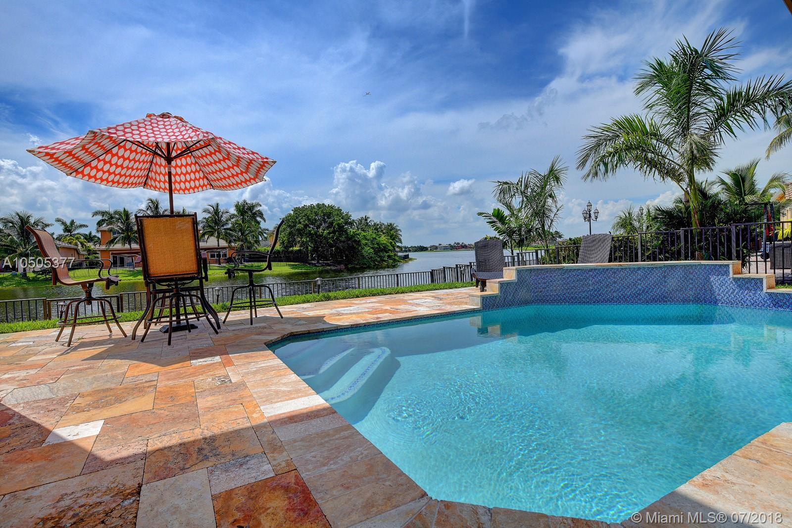 STUNNING premium lakefront pool home in beautiful Vizcaya @ Sunset Lakes. True 4/3 + office. This spacious home features a fantastic floor plan offering many updates such as a custom kitchen, professionally updated office/closet built-ins, gorgeous travertine pool deck, re-marcited pool, high-end chandeliers, video surveillance security system, etched double glass door entry and more. For a detailed list of updates see MLS attachment. Low HOA fee includes beautiful resort style complex featuring a clubhouse, pool, tennis, basketball, fitness center, gated security entry and more. Great access to I-75, shopping, dinning, etc. Corporate relocation...priced to sell. CHECK OUT THE VIRTUAL TOUR! AGENTS...PLEASE READ BROKER REMARKS for showing instructions & offer requirements. Thank you