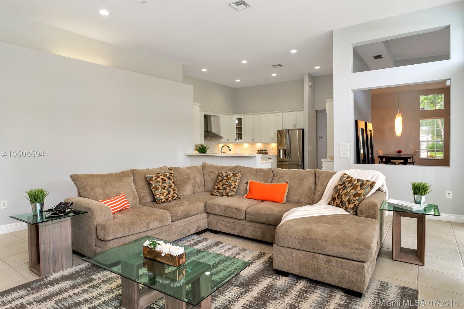 Come see this impeccable, upgraded and meticulously remodeled 5 bedroom/3 bathroom dream home in the lavish, upscale community of Sunset Lakes in Miramar! The massive vaulted ceilings, beautifully upgraded kitchen, luxurious master bathroom, built-in sound system, recessed lighting, high end fixtures, and stacked stone wall in the family room are just a few features that are sure to wow you. Enjoy entertaining your family and friends in the well landscaped front or backyard with an over sized pool or simply relax in your private oasis as you enjoy living lakeside or in your own outside spa. This tucked away and captivating community has a lakeside beach and beach pavilion, courts, parks and more. Buyer's Agent to verify all information