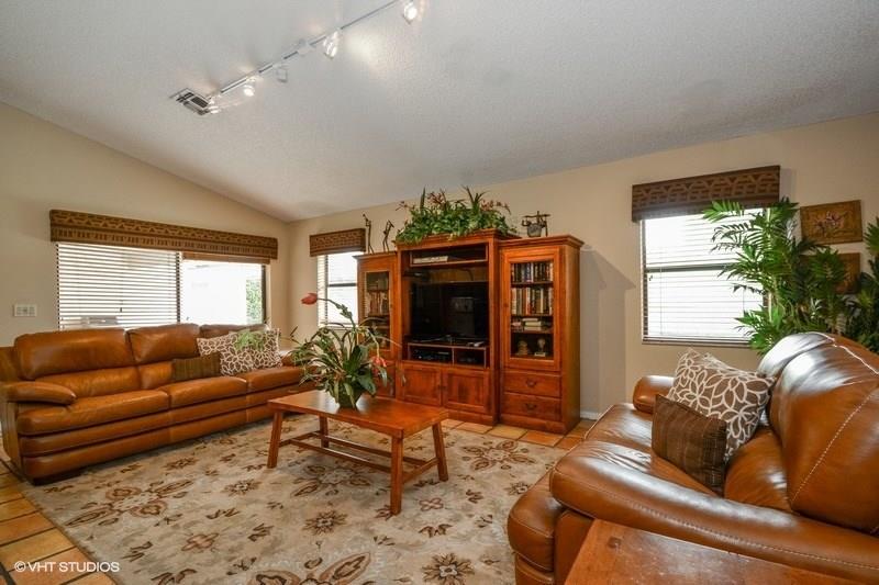 Lovely 4/2.5 Pool Home, HUGE Private Yard & Open Patio. Roof 2013. Low HOA. Tiled main living areas. Updated Kitchen w/ large Island, big Pantry, elegant granite counters, built in wine rack, newer stainless refrigerator & dishwasher. Spacious Family Room overlooks Pool. Covered Double Front Door entry, Formal dining, Living room w/custom built ins & Hi Hats. Bathrooms tiled. Master Suite Retreat w/walk in his & her closets. Master Bath w/ Spa tub & large shower. 2 car garage, Laundry room.