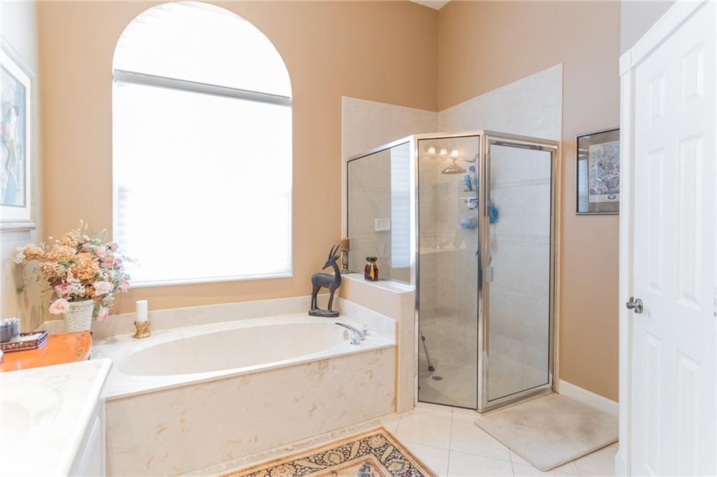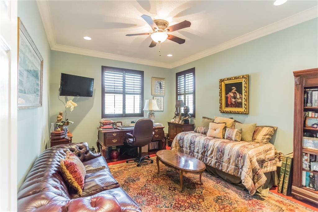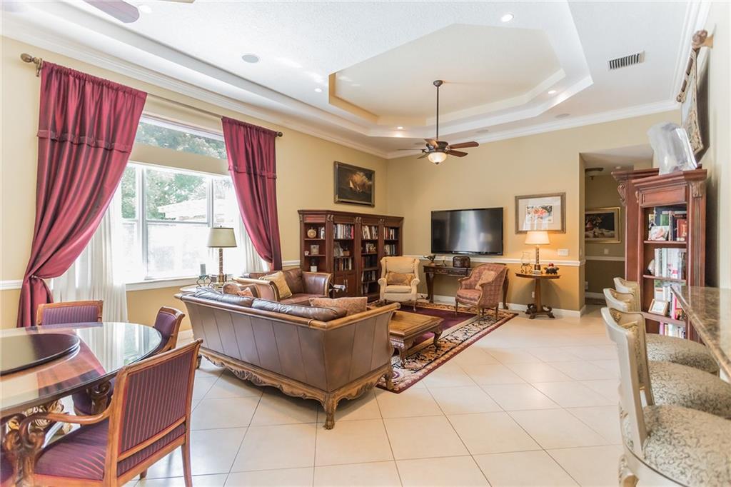 4 bed+office on just under an acre in a gated community features tray ceilings, crown molding, tile floors in main living areas & wood floors in bedrooms/office. Central kitchen has granite counters & stainless appliances, views across the family room to the screen porch, private rear yard & pool. Master suite has his & hers closest, dual sinks, garden tub & corner shower. 2 further ensuite bedrooms & all closets w/ built ins. Paver circular driveway provide plenty of room for parking.