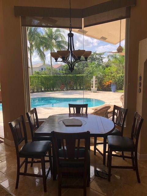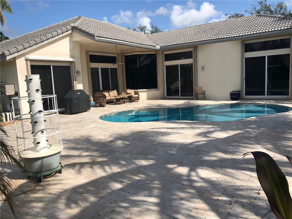 Beautiful turn key home. 5 bedrooms plus an office! Close to shopping dining and entertainment. Corner lot with beautiful sunrises overlooking your redone and heated saltwater pool. 5th bedroom is a huge bonus room which can be converted to a bedroom and an office or perfect for a theater room or big playroom. New travertine floors. Brand new kitchen. Three way split bedroom plan. Amazing neighborhood with park right across the street. Fenced in yard. New A/C. Low maintenance! This home is a must see!
