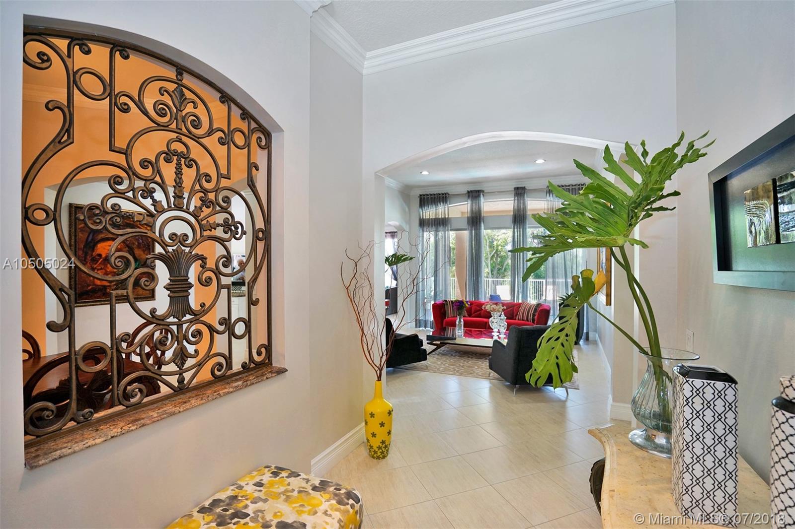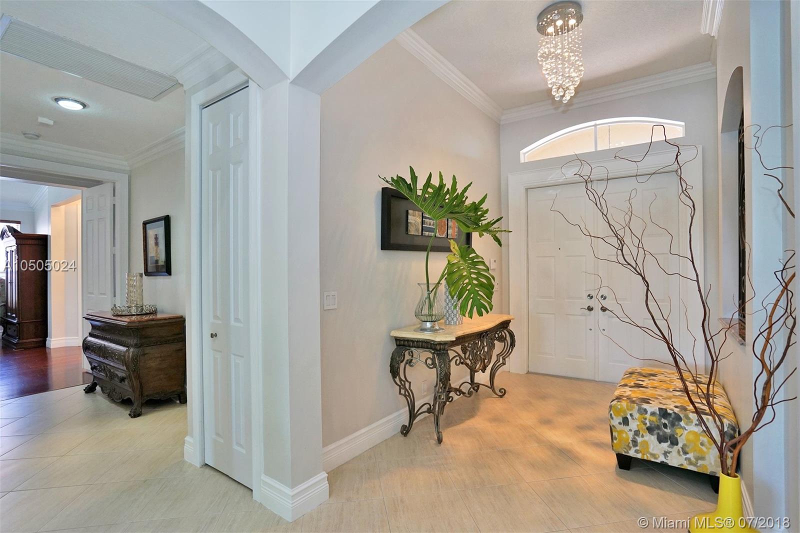 Only a few pristine homes come to the market!!. The Excelsior model is a one-story home that has a split plan with soaring ceilings adorn by Crown moldings and 18 in ceramic tile flooring decorated by elegant baseboards. There is a lot of natural light that flows through the windows of the entire house which are protected by according shutters. The kitchen has SS appliances, designers with granite countertop and high-quality wood cabinets. The Master bedroom is decorated with a tray ceiling that offers 2 walk-in California Closet. Master Bathroom with separate granite vanities that comes with a shower and a Roman tub. All the bathrooms come with upgraded vanities and showers. The Back Patio is facing a green area (privacy) is your own private Oasis that has aSalt pool with spa