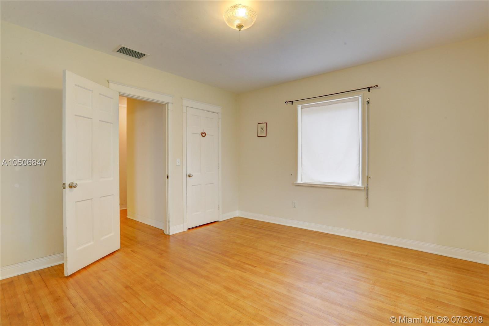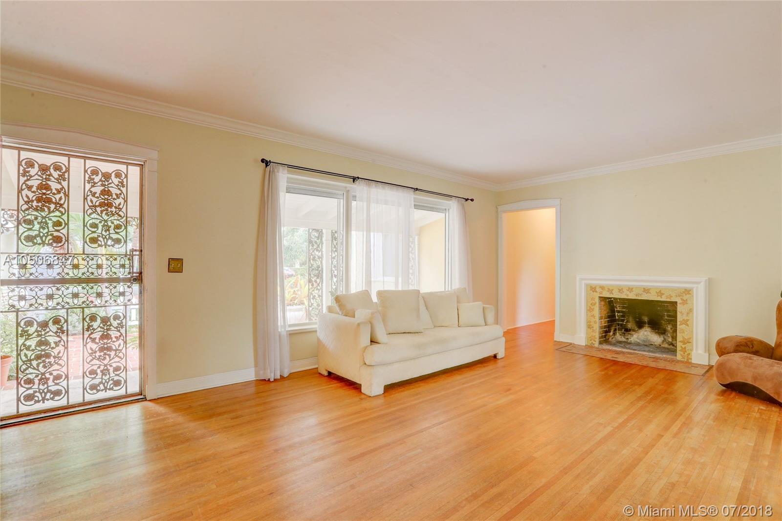 Beautiful three bedroom/two bath home in beautiful tree-lined community in Miami Shores! This quaint home has wood floors throughout main living area, tile floors in kitchen and marble tile in bathrooms. Stainless steel appliances and wood cabinets. Wood burning fireplace, crown moldings and impact windows, interior plantation shutters and exterior roll down shutters. Parking for two cars in the front and two more in the backyard, garage was converted into a third bedroom. Entertain in your beautiful backyard with natural pergola. Must see! New Electric, owner financing w. 50% down, 5% int, 5 year balloon. 13 month home warranty included.