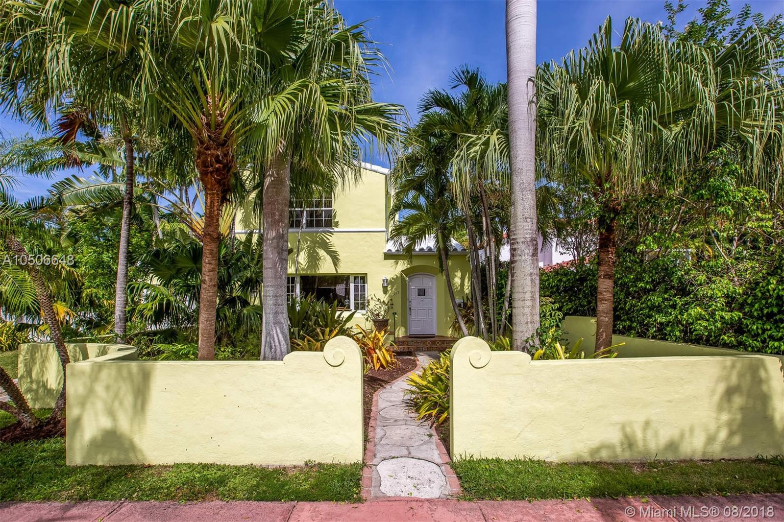 Style and history combine in this regal 1933 residence. Rich in original architectural details, the home has an easy functional floor plan, a central axis with exterior doors in all 4 directions. The grand Music Room which could be one of the most beautiful rooms in Miami Beach has a 16ft cathedral ceiling & french doors that open to the garden. Situated on an oversized lot of 11,250 SF, the park like grounds are filled w fruit trees & palms & has ample room for a new master suite addition & pool. Bedrooms are split; first floor has 1BD, 1.5 BAs & second floor has 2 BD and 1 BA. Includes a 1 car garage. This highly desirable Mid- Beach, Royal Palm Ave address is blocks away to schools, shops, restaurants, Mt Sinai Hospital, the Beach and Causeway to Miami.