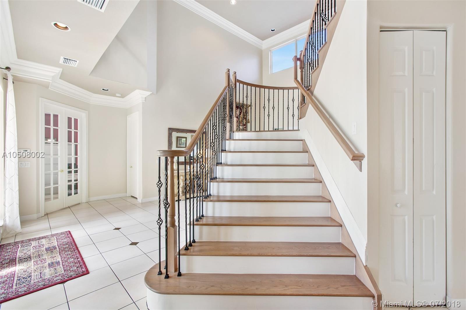 Wyndham Lakes-Grand Isles. Neutral Toned - Grand Entrance, extremely well maintained home. Featuring, redesigned & rebuilt hardwood staircase (DuChateau Wood) w/new iron & wood railings (to match flooring); Main Floor hosts formal living room, office, open kitchen-family room, formal dining room, guest room w/full bath (cabana bath) plus 1/2 bath, laundry room & newly added large inside storage space; 2nd level hosts 5 bedrooms (triple split) an oversized master suite with sitting area insuite bath w/dual sinks, bathtub, shower & oversized master closet; 4 additional bedrooms one w/insuite bath (the 3rd bath located by other bedrooms); 2 A/C units w/the FPL Energy Saver system (very low bills year around) All Rooms upstairs have wood floors; Salt Water Pool, Screened Lanai; Prof Landscaped