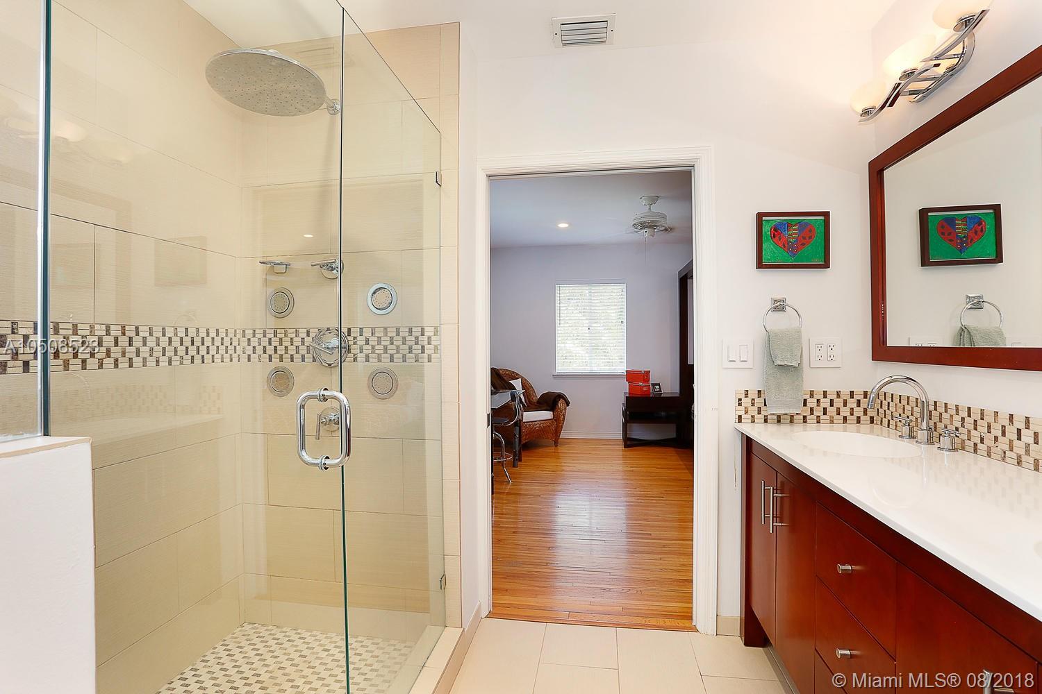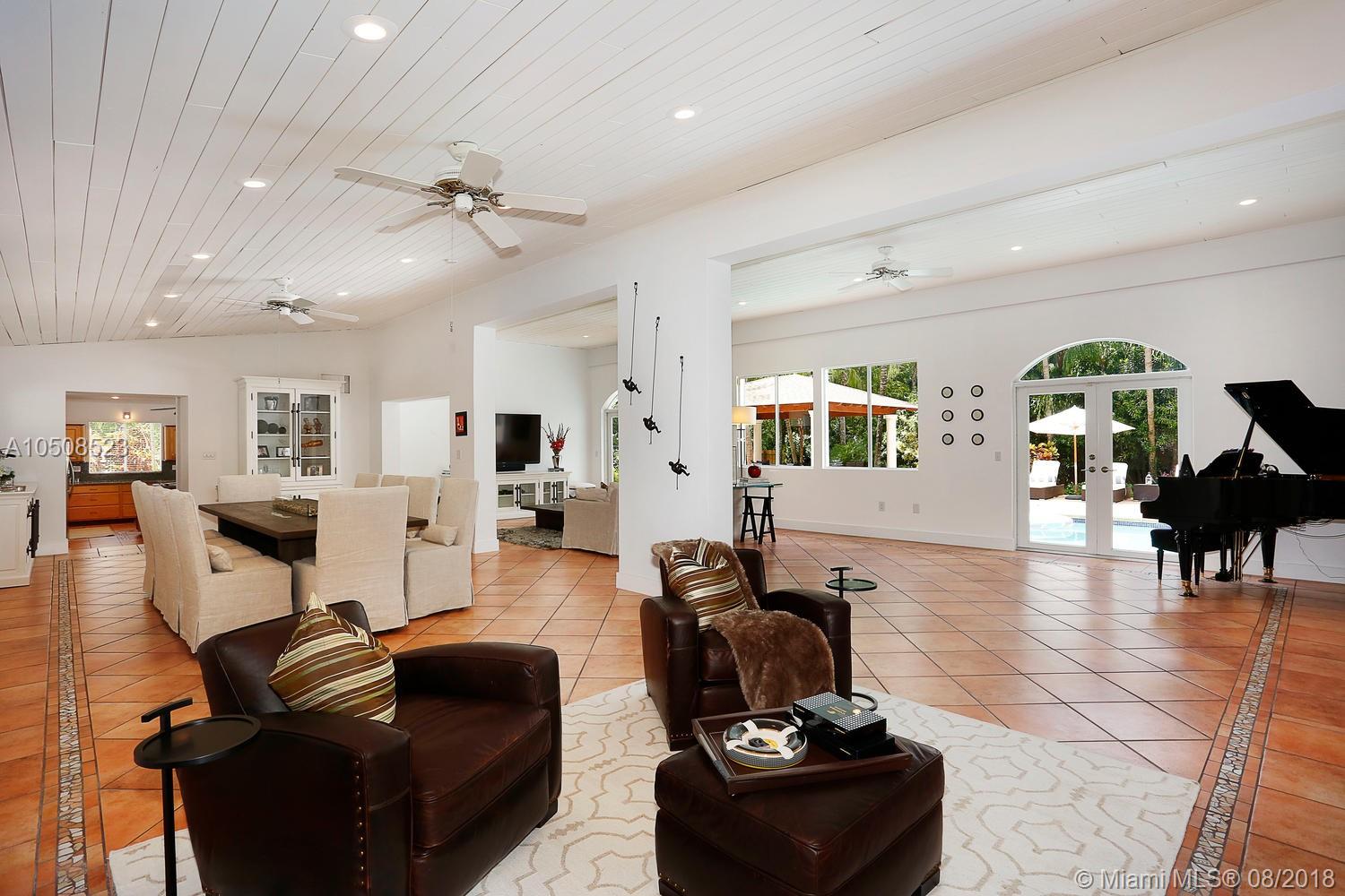 This beautifully landscaped private gated North Pinecrest home is situated on a cul de sac, with no thru street, and is minutes away from the top public and private schools. This perfectly charming 4 bedroom home (plus office/den, which can be used as a 5th bedroom) features a new roof, high ceilings, spacious bedrooms, updated bathrooms, walk-in closets, a large open great room with fireplace & plenty of natural light. Enjoy a dip in the pool or relax in the cabana surrounded by a lushly landscaped patio. The fenced in lot area is over an acre & larger than tax roll at approximately 44,000 Sq Ft. This is due to the fact that the City of Pinecrest permitted the previous owner to include approximately 6,520 sqft of city property on the no thru street when the lot was gated.