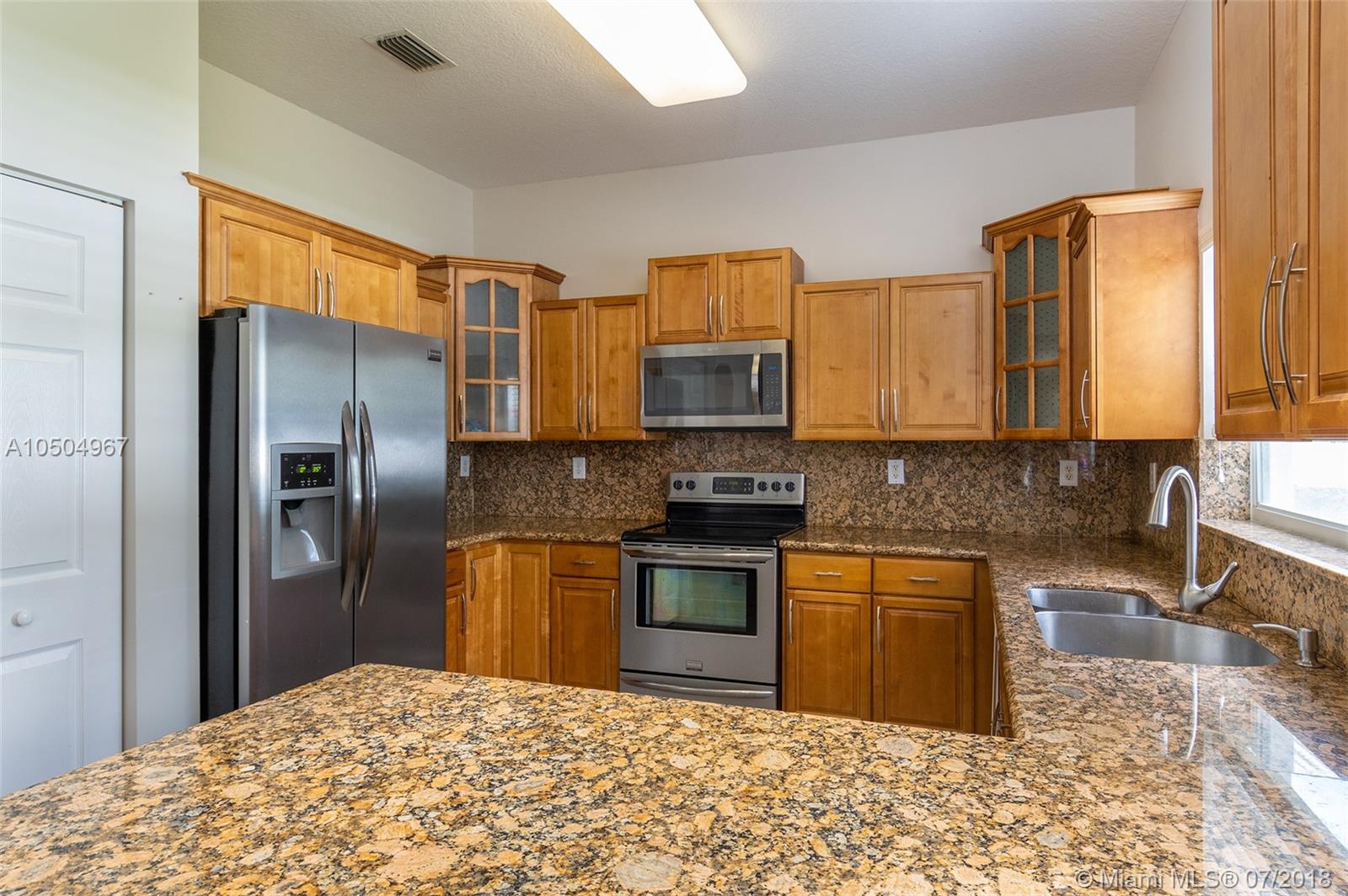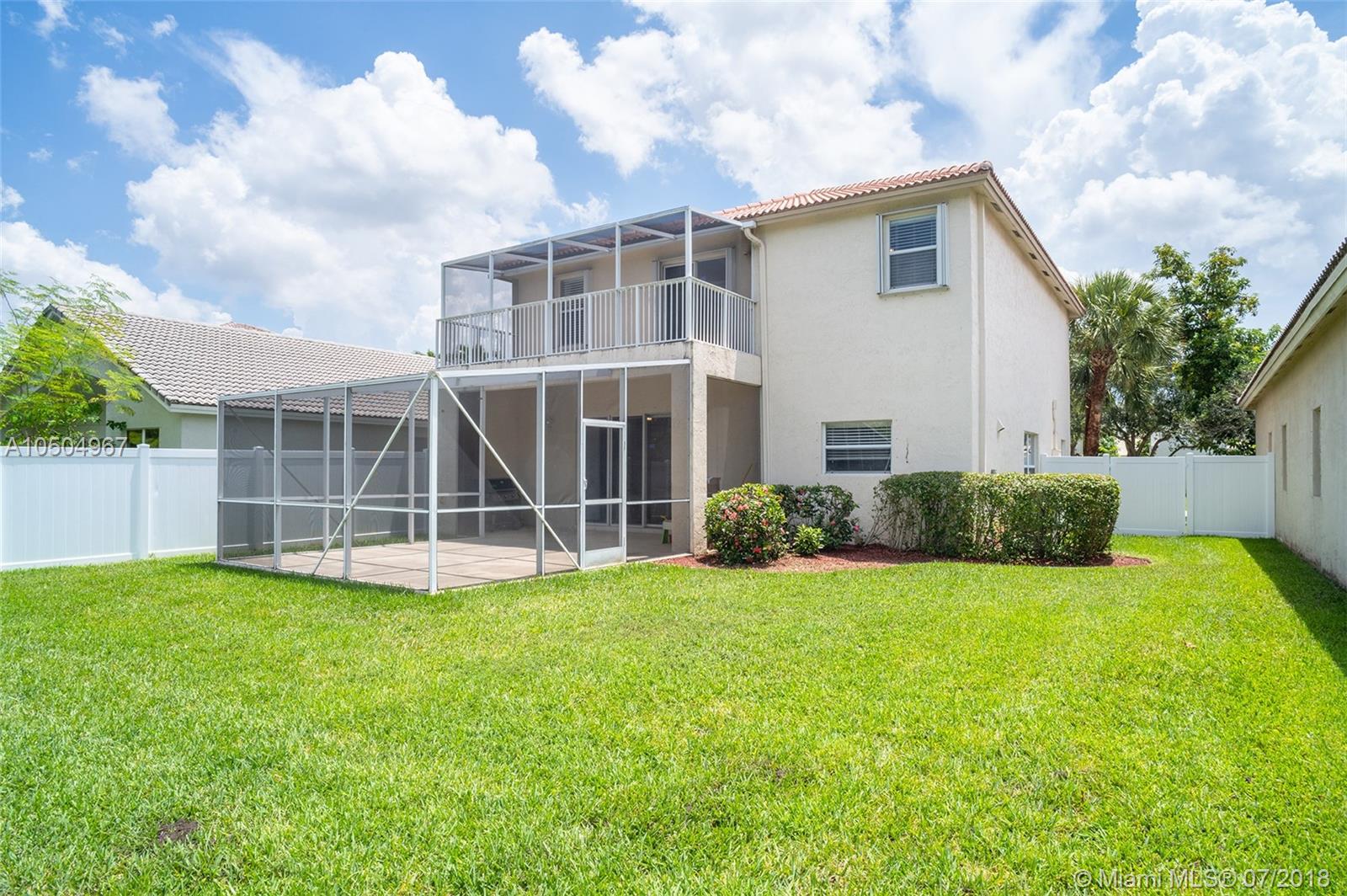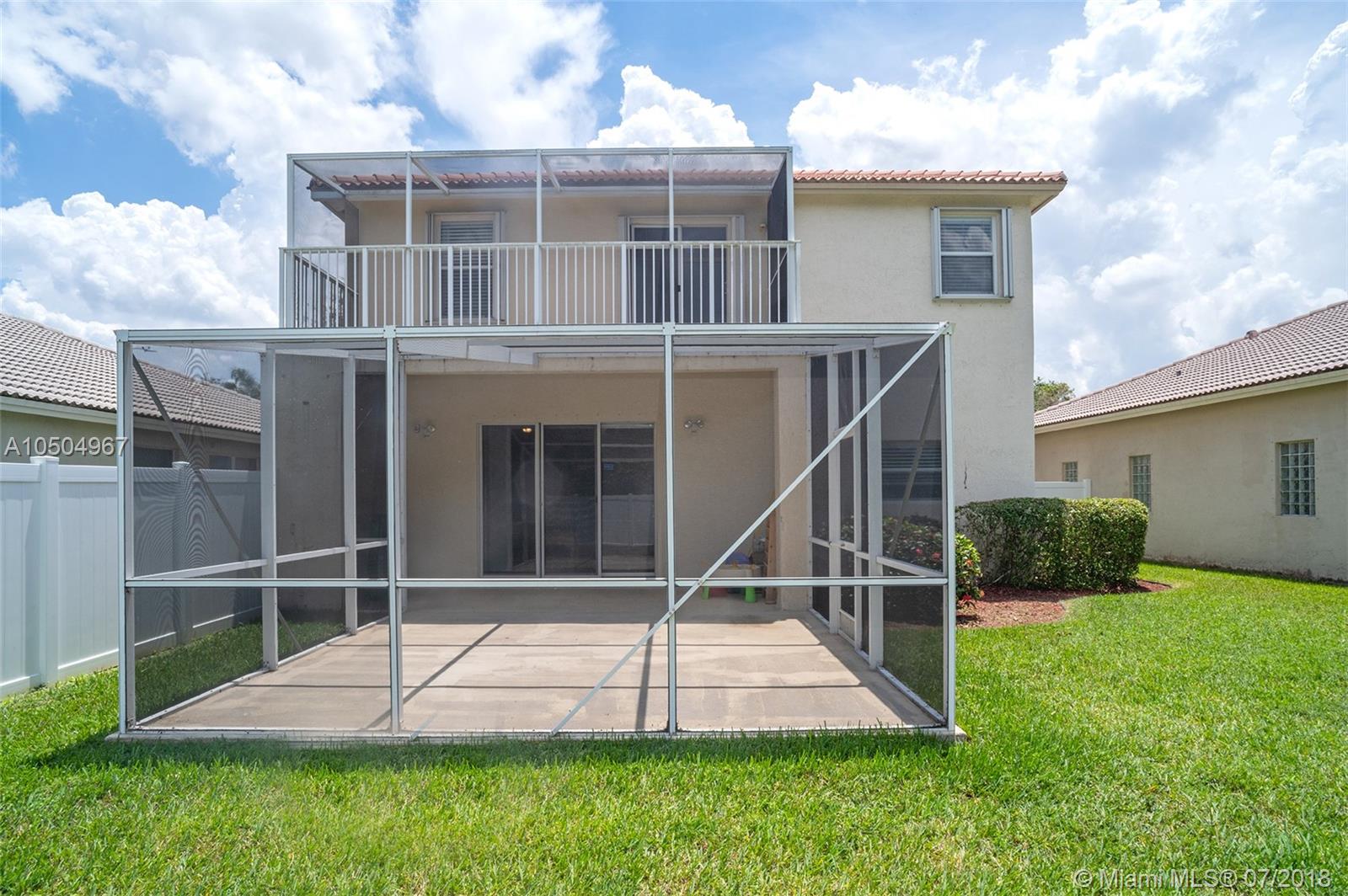 Magnificent 2 story home in Pembroke Isles, a resort like community in Pembroke Pines. Downstairs features an open, airy floor-plan comprised of a kitchen with granite counter-tops and warm wooden cabinetry, a large family room with sliding glass doors that open to a beautiful fenced-in yard and screened in patio, a spacious dining room and a half-bath. Lots of natural light. A beautiful staircase leads upstairs to 4 bedrooms. Master suite, with double doors and room for a sitting area has access to a screened balcony. Master bath with double sinks, soaking tub, separate shower and linen closet. All four bedrooms are carpeted with ceiling fans. A+ Schools nearby, zoned for West Broward High. Close to major shopping malls, restaurants & highways. HOA includes alarm, cable lawn and guard.