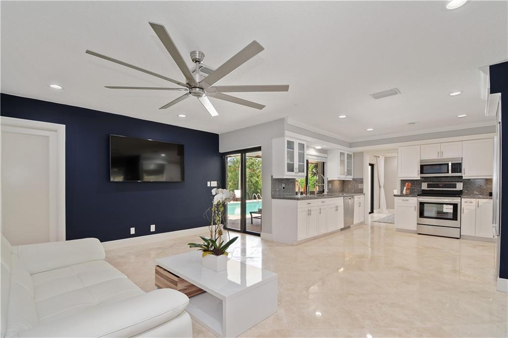 BRING YOUR OFFER! In Door/Out Door S FL living at its best! Bright 5 bedroom floor plan with multiple living spaces connecting with the outside swimming and entertaining decks. Your pool will be warm from the sun while you enjoy the shade and views of the waterway. Your huge kitchen is at the center of it all and which allows for creative cooking and lively entertaining. Move in ready! Space for your large yacht or multiple water toys. NEW ROOF/Impact windows, upgraded new finishes for maint. free living!