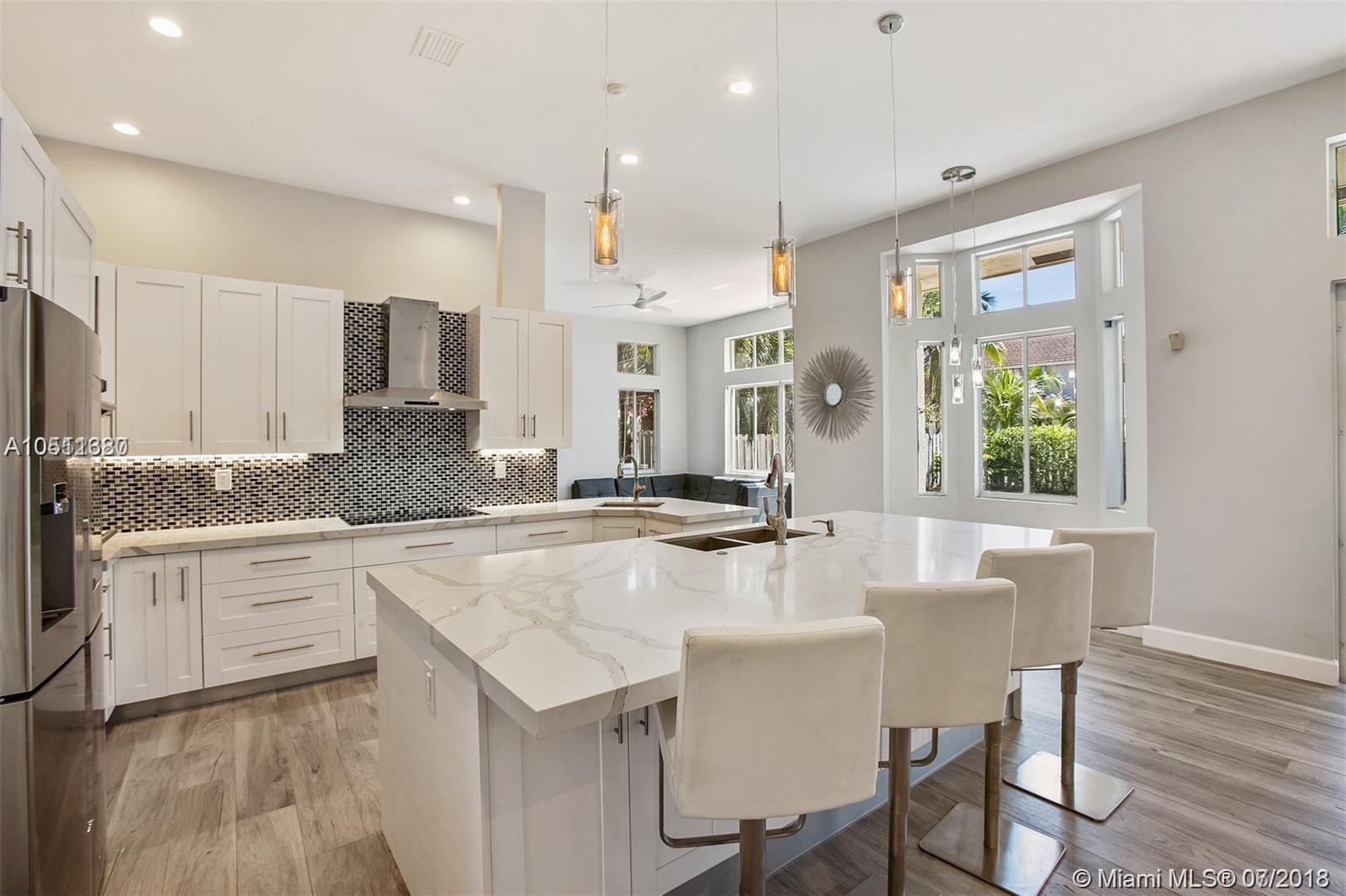 Stunning completely renovated one story ranch style home. New open concept true chef's kitchen with quartz counter tops, white wood cabinets, top of the line smart appliances, double sinks, huge eat-in island overlooking the spacious living/dining/family room areas perfect for entertaining. New bathrooms, new ceramic wood look tile throughout. 12 foot ceilings and over sized windows add tons of natural light. Enjoy endless Florida summer days in your own backyard retreat, big pool to cool off or to go for a swim. Enjoy morning coffee or tea on your porch! Premium lot, arrive home to a private cul-de-sac, great circular driveway with lots of parking for family and guest.