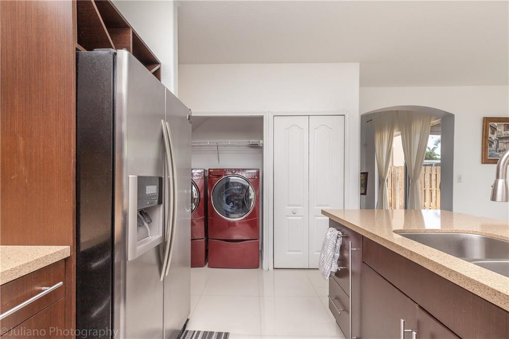 Amazing natural light fills this beautiful 3 bedroom Townhome. White Porcelain tile floors flow throughout the living area and Pergo is upstairs. Updated kitchen with SS appliances. High-end washer and dryer. 1/2 Garage has been tastefully converted to a library/office, 1/2 into accessible storage. Master bath has been completely updated with modern finishes. Highly desirable corner lot. Its rare you find a townhome with a yard of this size. Completely fenced. This home hits all the notes, act fast!