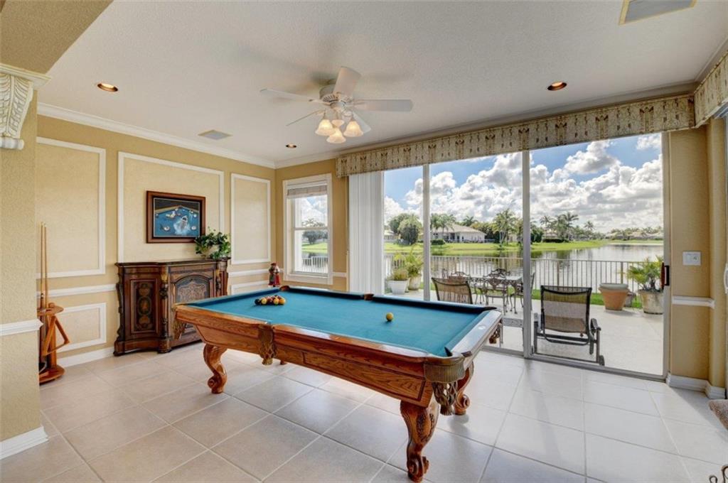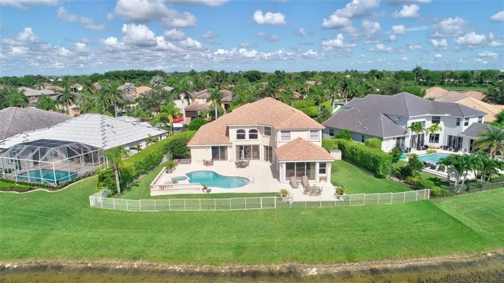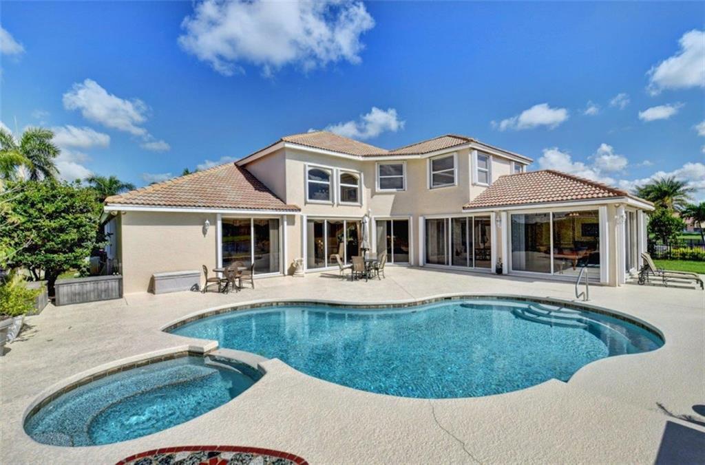 One of the best Southeast Exposure lots in Boca Falls with 122.50 feet on the water with Incredible Long Lake Views. Huge expanded 18'x 36' Family Room overlooking the lake and pool area. In addition to three bedrooms, the second floor has a 14'x 10' foot Loft and a 19'x 19' foot Game/Media Room. Very large 68' feet wide pool patio area, with 122.50 feet on the water, fantastic for entertaining. Buyer responsible to pay Capital Contribution of $975.00 to Boca Falls HOA.