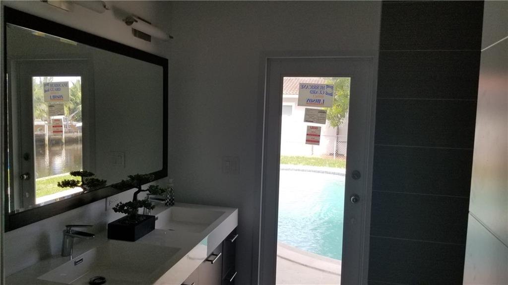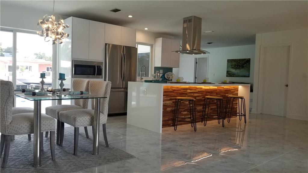 Complete remodel w/permits in sought after Coral Ridge Isles! Ocean access pool home offers 78' waterfront & private dock. Split floor plan, open concept kitchen,living,dining & family rooms show off the sprawling entertaining spaces that flow outside to the pool area. Huge cooking island w/quartz countertop & waterfall edge, modern all new custom kitchen cabinets, just bring the dishes. New 24x24 porcelain tile throughout. NEW vertical impact windows, sliders, roof, electric panels, driveway & MUCH MORE!