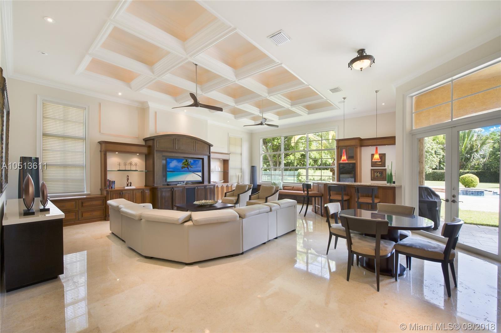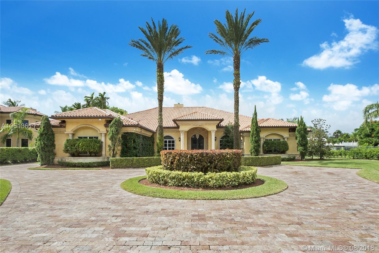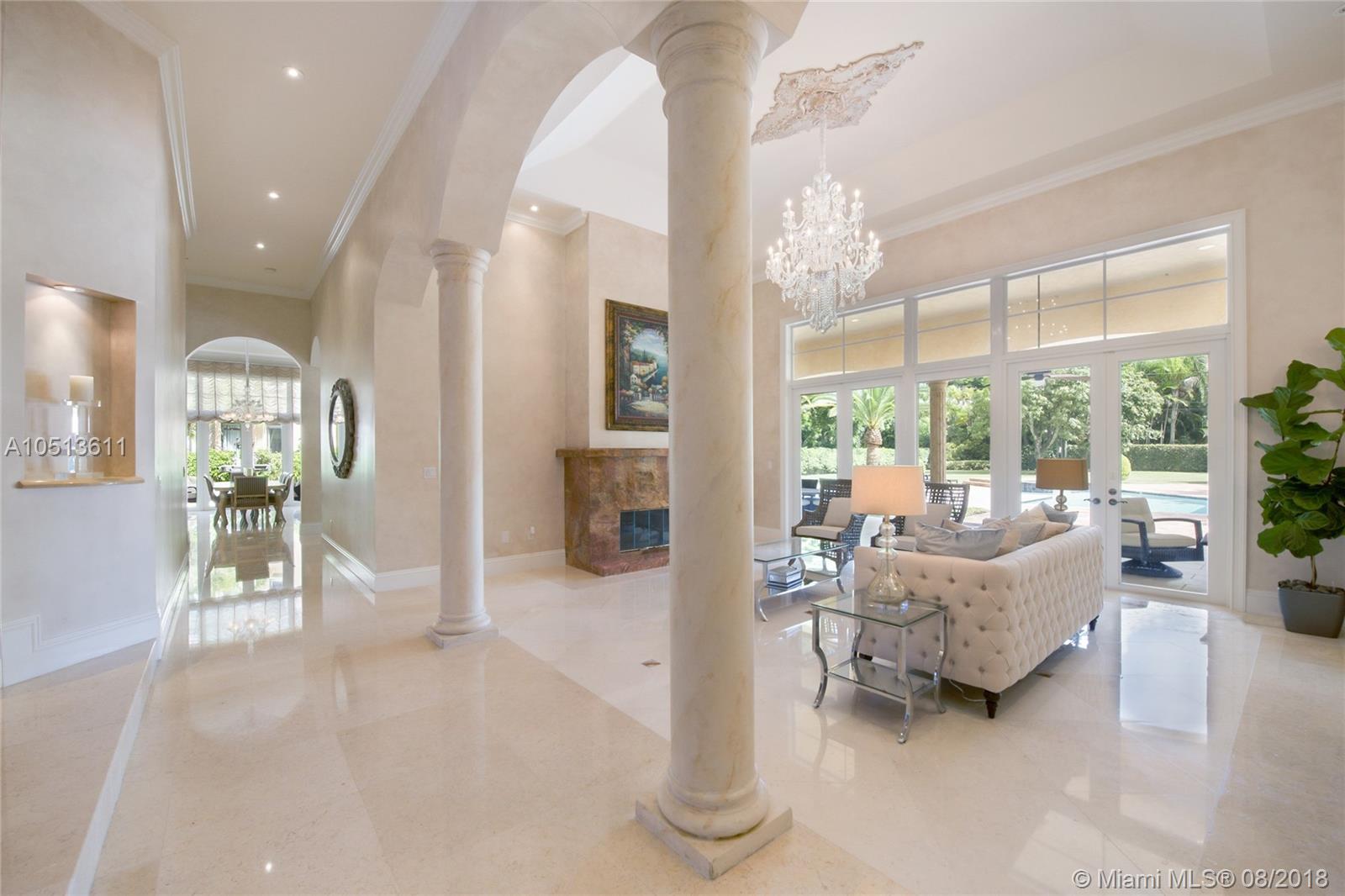 Magnificent Mediterranean design estate home with detached pool/guest house. Home is nestled on lush, gated acre lot in sought after northeast Pinecrest. The main house, 5B/5B with good quality finishes and great appointments, guest house 2B/1B. Beautiful entryway with gorgeous marble floors with onyx inlays, lighted art niches & fireplace. Grand MB w/sitting area and enormous walk-in closet, gourmet kitchen, coffered ceiling in the large family room with wet bar. A home to be enjoyed and relax in!