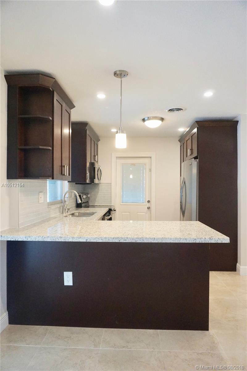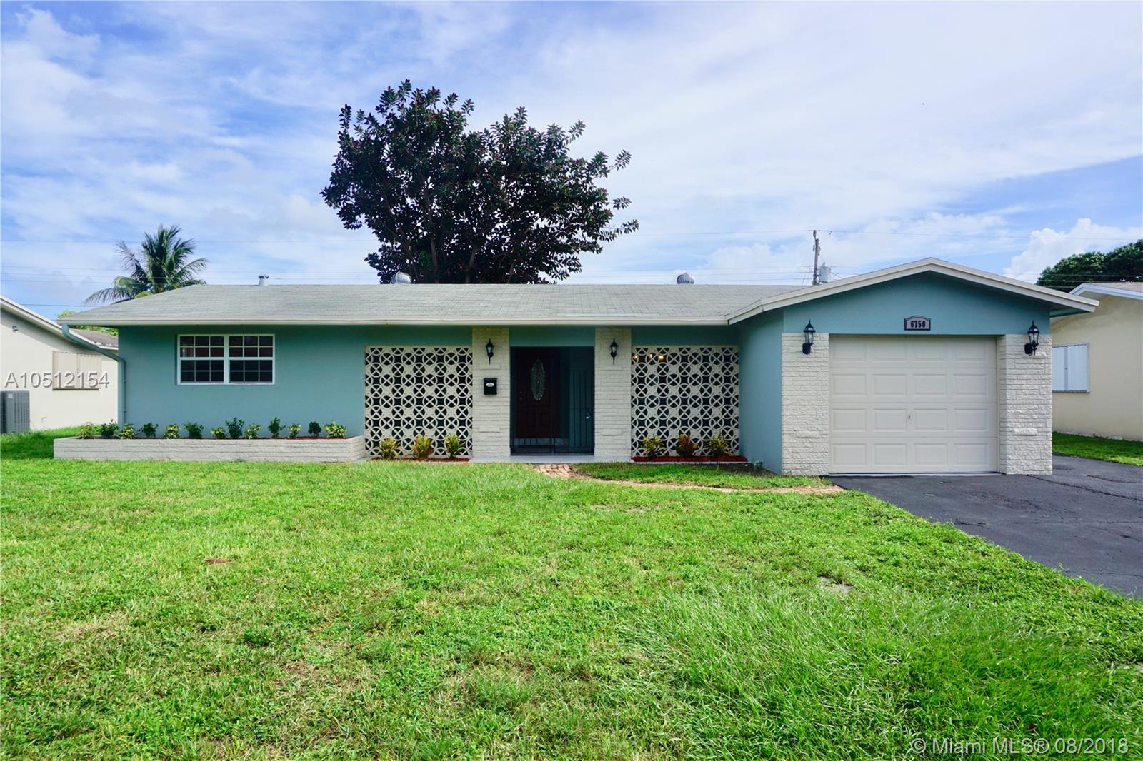 Wow !!! Beautifully and completely remodeled 3bed/3bath/1 car garage house with a large screened pool. House has an elegant new flooring throughout. Luxurious new kitchen has wood cabinets, granite counter, glass tile backsplash, new Frigidaire Gallery Series stainless steel appliances and pass through window to the huge screened pool, perfect for entertaining. Bedrooms are dressed with new wood-style ceramic floors and are good size with spacious closets. There is also a legal full bathroom in the garage that can be used as a cabana bath for pool guests. New washer/dryer, new central AC unit, new tankless water heater, new garage door opener, new pool pump. Perfectly located steps away from elementary school, close to Broward college and highways. House is ready to be your home !!!