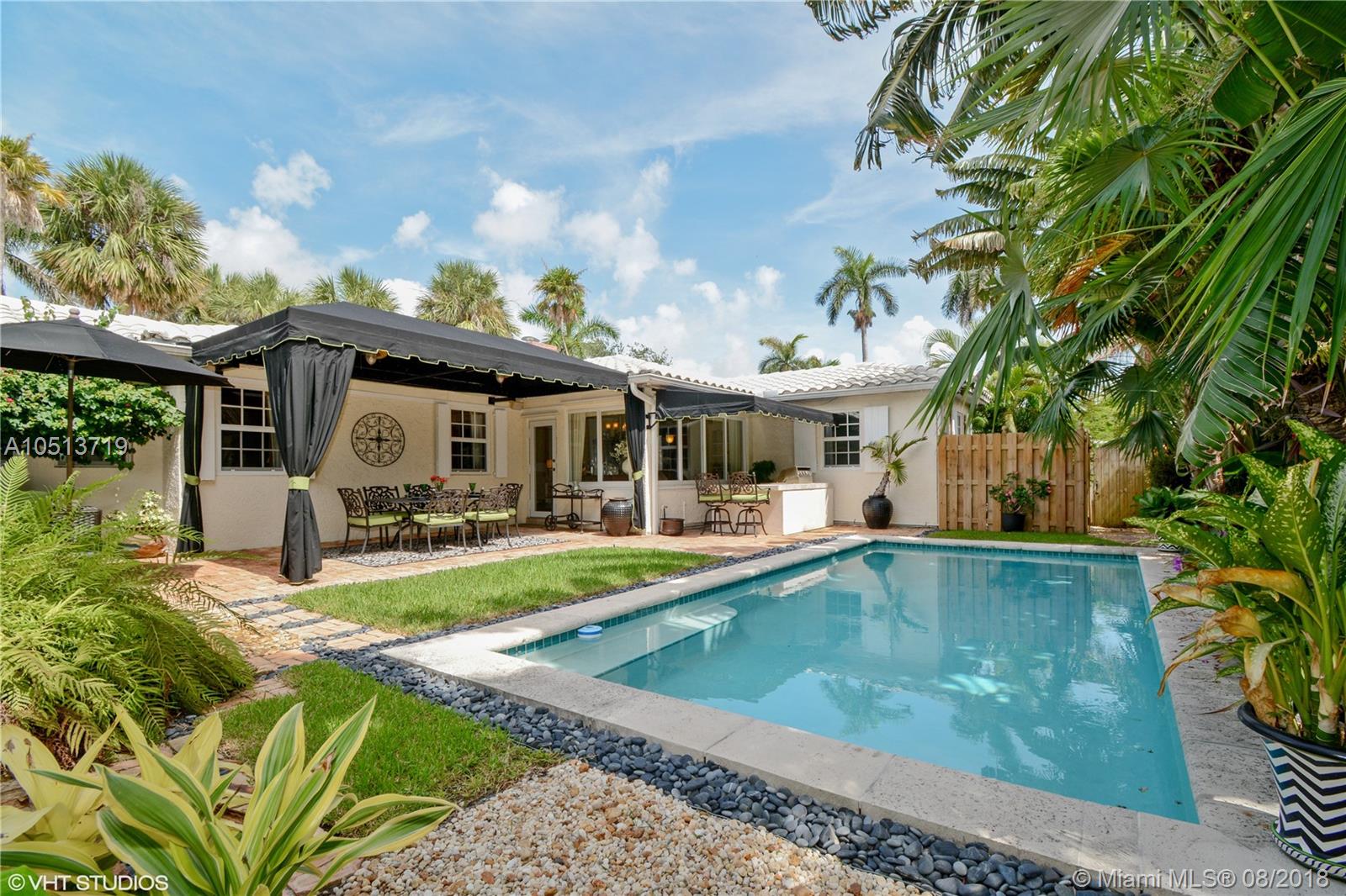 This 1940’s home has been graciously updated, yet still maintains it’s Old Florida charm. Hardwood floors throughout, crown molding, updated bathrooms, and gourmet kitchen with gas stove top. Two AC’s, two water heaters, gas fireplace, all impact windows and doors. This three bedroom 3 bath homes also features a family room and large office. Master bedroom has sitting area and large walk-in closets, and Spa style bathroom. Outdoor living at it’s best, lush mature landscaping with captivating gardens, tropical pool area with outdoor kitchen, surrounded by Chicago brick. **The furniture is also for sale**