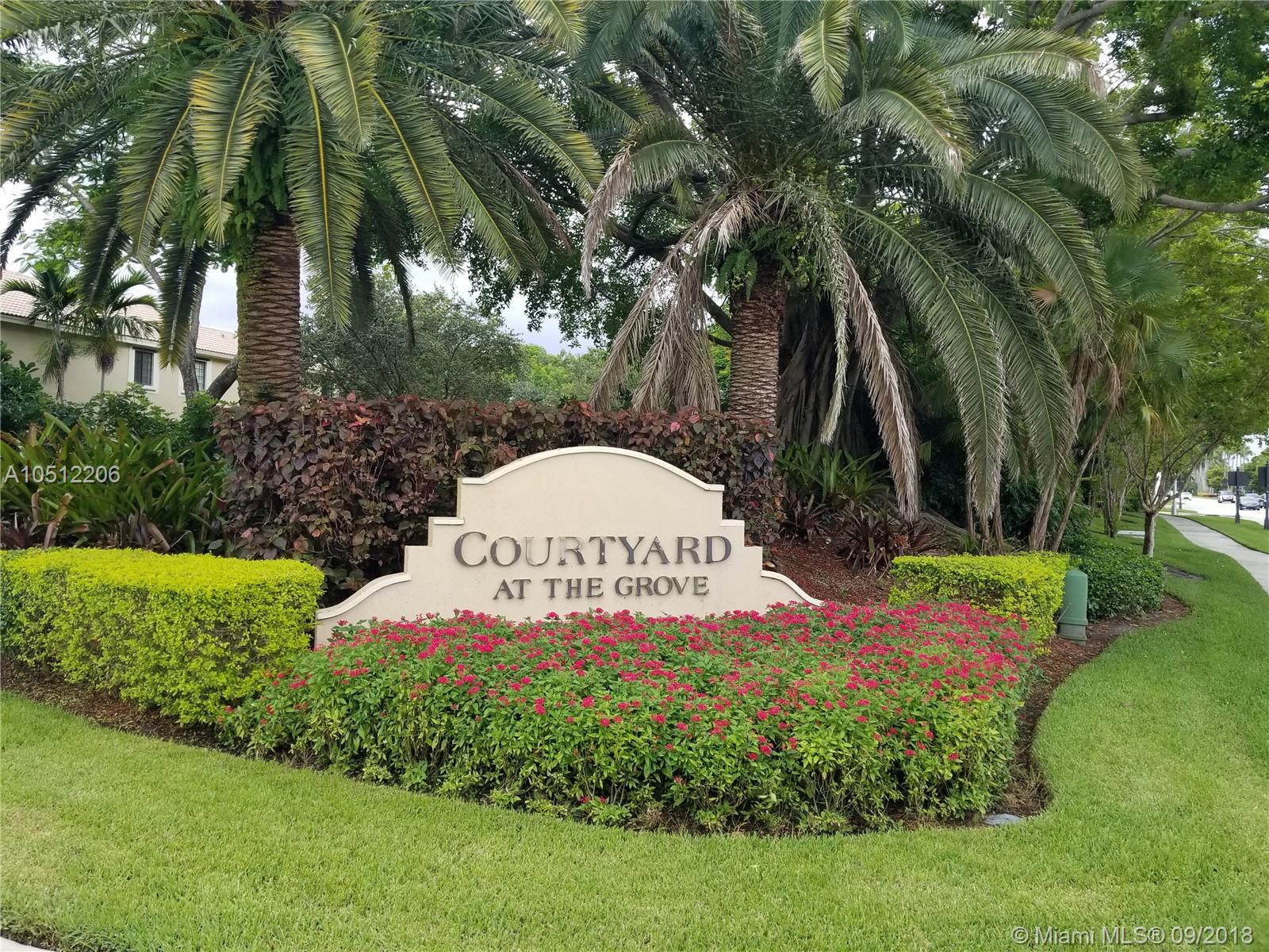 Beautiful Courtyard at the Grove 3 bedroom 2 1/2 bath town home with tile downstairs and laminated wood floors upstairs, backing up to private hedge and the Weston public library. Walking distance to Falcon Cove middle school and Cypress Bay High A rated schools. Great investment location, location, location.. Rented $2000/month until May 2019.