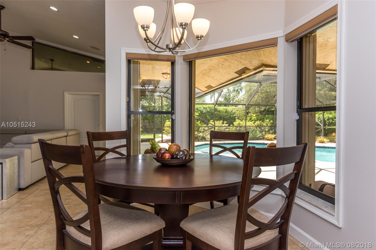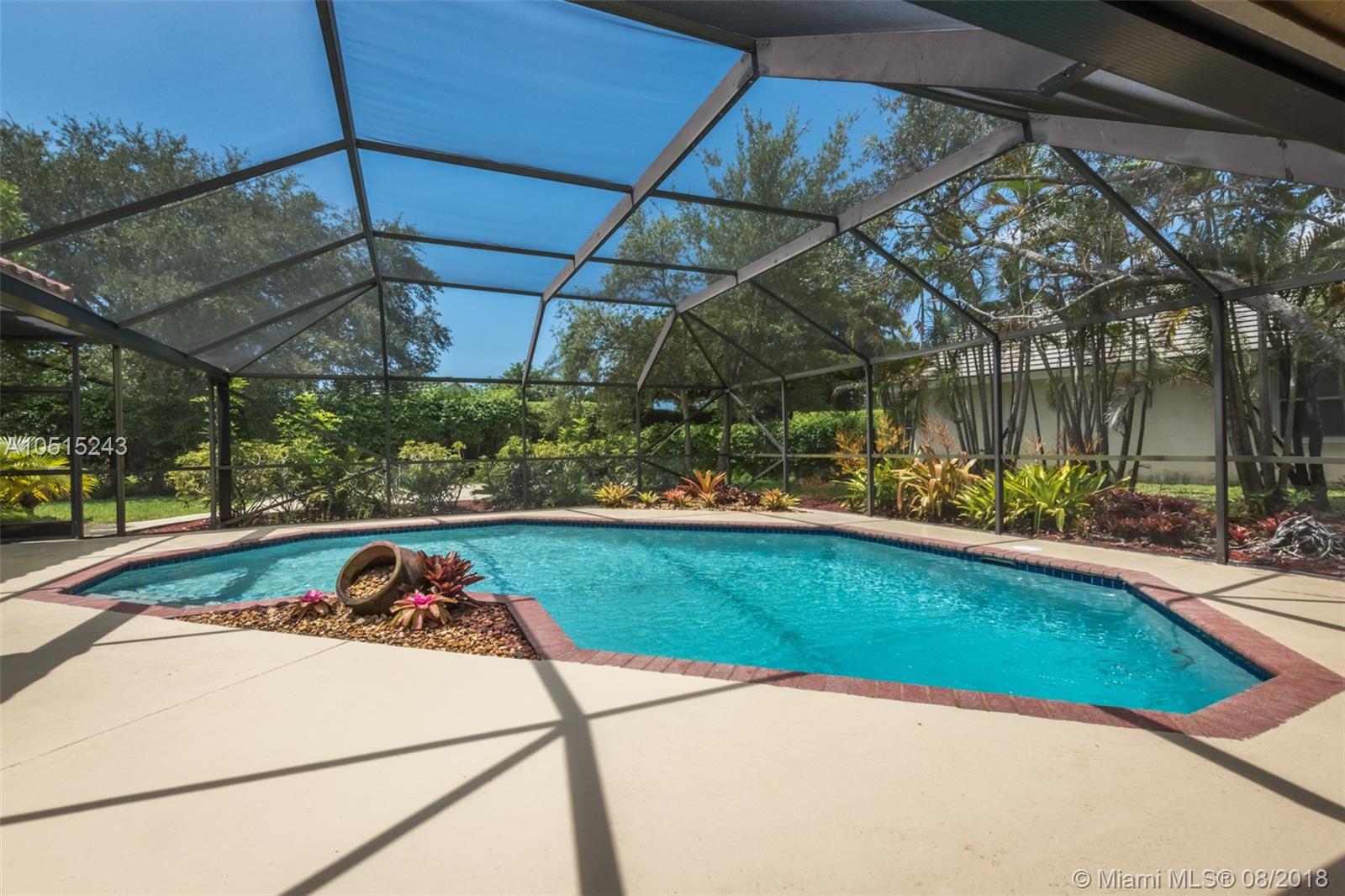 Tucked on a quiet royal palm tree lined street in the boutique gated community of Palm Island. This custom home is set on an oversized lushly landscaped lot with spacious patio and screened pool plus yard with playcourt. 4 spacious bedrooms plus 450 sq ft playroom. New Roof (2014) Brand New contemporary white kitchen (2018) with Stainless Steel Appliances and quartz countertops. All bathrooms remodeled.This elegant home greets you with a circular driveway and impact front door. Soaring ceilings let in the light. Freshly painted in today’s colors. Full accordion protection. Exterior recently painted. * front view of lake * garage hurricane protected/ impact * LED lights throughout * wireless burglar alarm * laundry room recently updated * backyard has half basketball court *