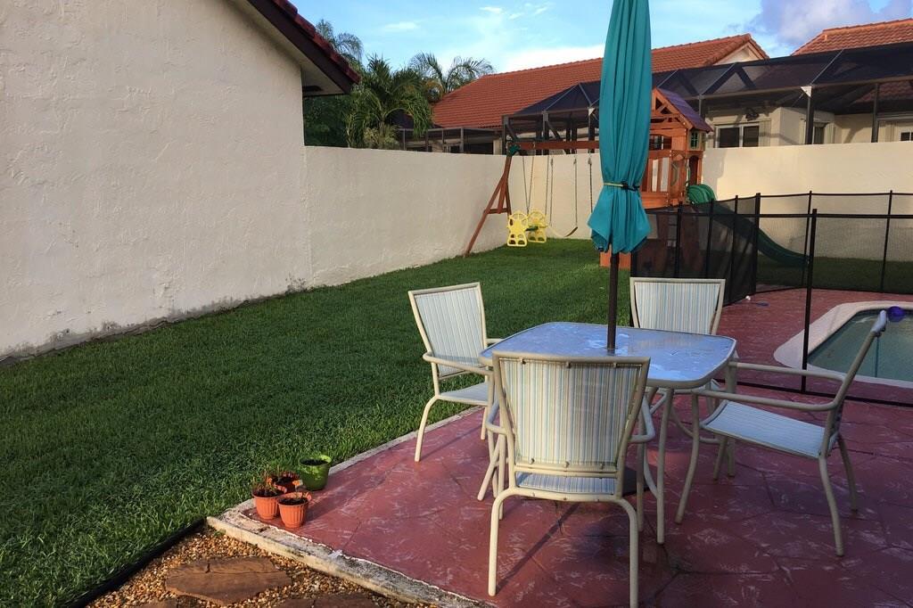 Beautiful 3 bed 2 bath home in perfect location right across from Del Prado Elementary and short walk to houses of worship. Close to shopping and restaurants. The neighborhood is very beautiful and has a tennis court. There is also a nearby lake with a walking path. This home has a nice size yard with a playset that stays and a pool with a baby safety fence. There is also an atrium for private outdoor living. The large master bed has walk-in closet and large suite. HVAC new in 2016. Pool Pump new 2018.