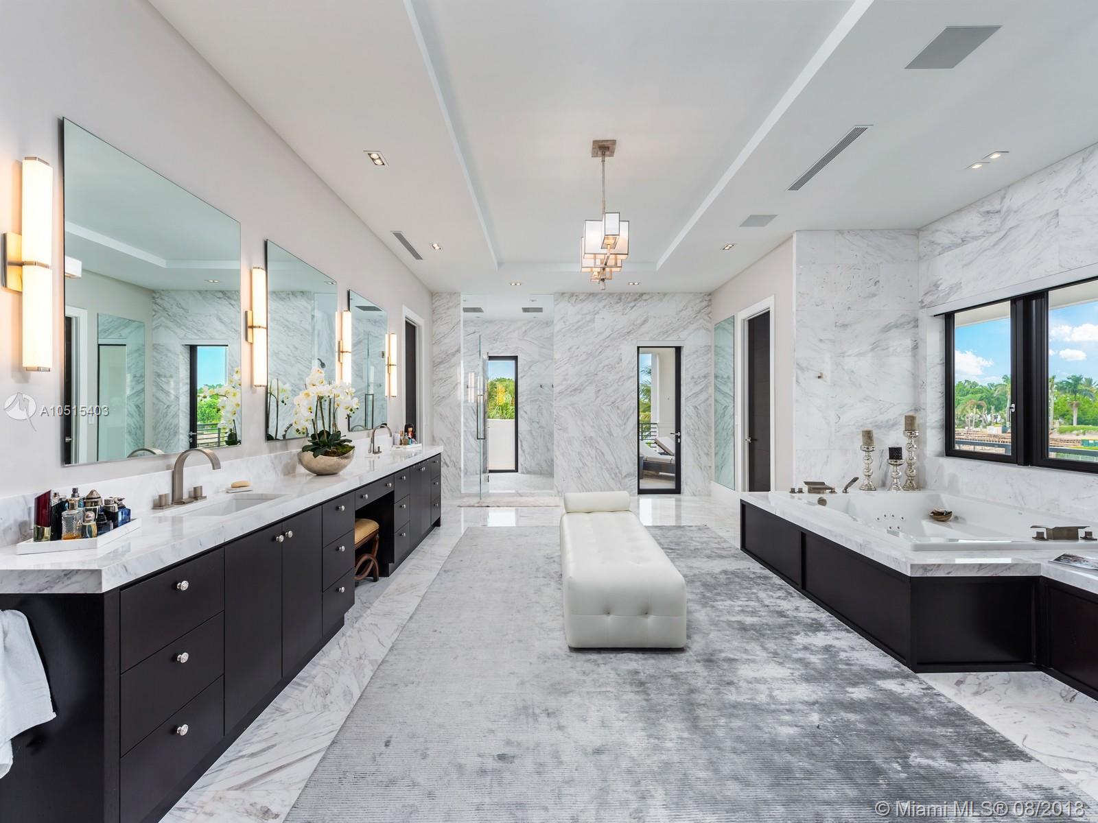 The most stunning home in the exclusive guard-gated community of Gables Estates. Premiere 255ft of water frontage w/160ft dock situated on the widest part of the canal just a few seconds from the bay w/direct ocean access. Extraordinary 2017 home w/fabulous views of garden & waterway will exceed your expectations of a unique lifestyle allowing natural light to radiate throughout every rm. Feat: impressive master ste w/sitting area overlooking the water & enormous marble bathrm spa style w/outdr summer shower, 14 seat estate of the art theater rm w/optic ceiling lights, game rm w/wet bar/wine cellar. Outdr entertainment area w/summer kit & Teppanaki table, covered terr, rooftop deck, infinity edge heated pool w/fire bowls & fountains. VISIT OUR PROPERTY VIDEO: https://youtu.be/yfcxHdDv_4g