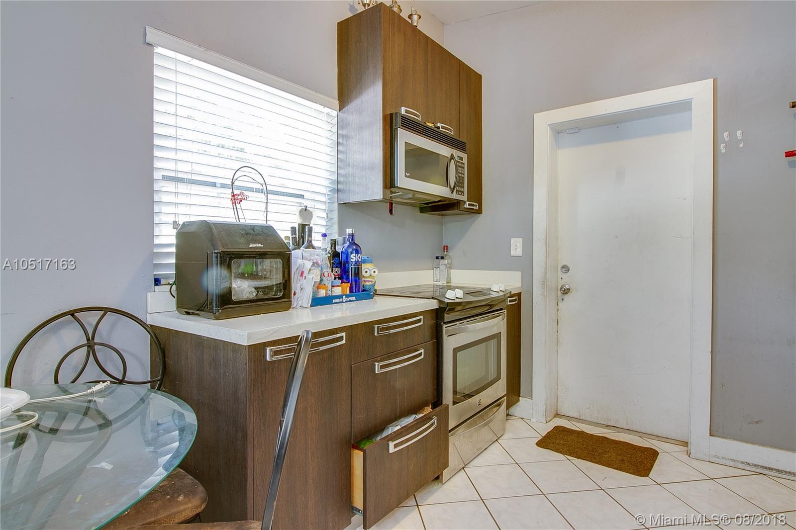 Centrally Located 2/1 in North Miami. Open kitchen layout with custom-made cabinetry and Stainless Steel appliances! White quarts countertops and cook top. Tile flooring all throughout. Updated Vanity. Comes with 3 wall units and storage room in the back. Large back yard with washer/dryer......Priced to Sell!
