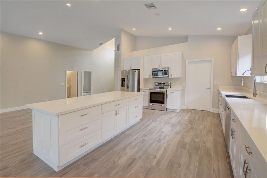 MANY UPGRADES in Prestige Eagle Trace/Highland (golf) Community:Modern Open Concept with all Brand New Kitchen with 42' white shaker cabinets, white quartz & top of the line Samsung SS appl. There are TWO MASTER suites. One Master Suite features a Separate modern soaking tub. All new porcelain tile throughout. All new LED lighting & ceiling fans. The A/C system & Electric water heater are brand new. Oversize Scnd Porch, Open Pool and relaxing water views. This home has it all...Priced to SELL QUICKLY!