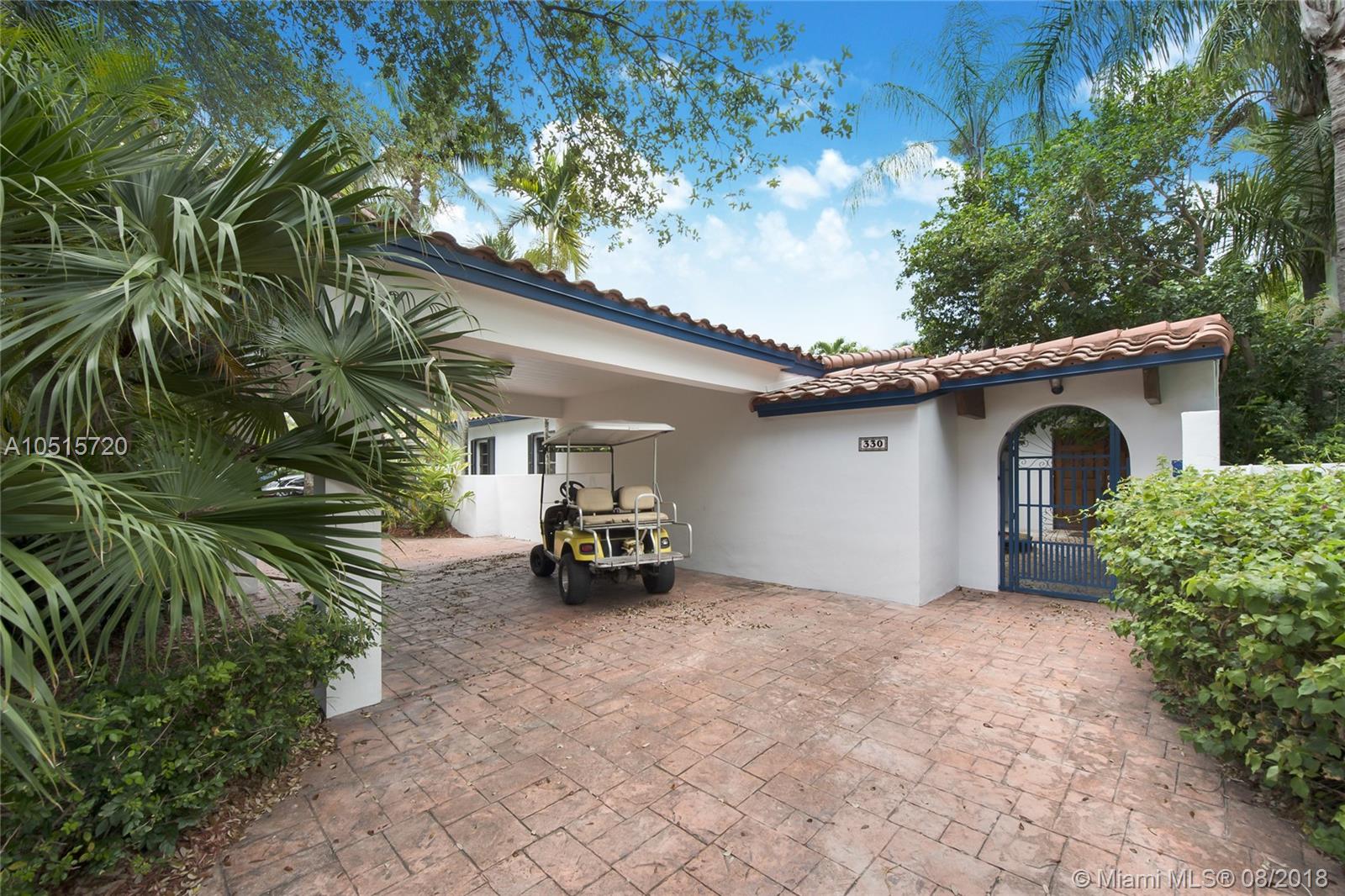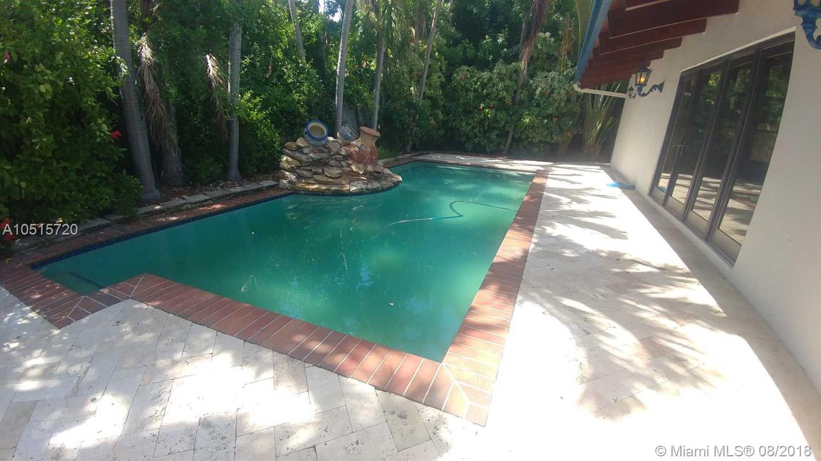 Elegant, spacious, bright and updated pool home with vaulted wood ceilings inviting light into all the house. Open and easy flowing floor plan featuring 5 large bedrooms, 3.5 baths, one bedroom (guest or service quarter) is located adjacent to the kitchen. Living areas open through French doors to a delightful pool and patio area. This is your perfect Key Biscayne location on a quiet street, carport and gated interior courtyard front entrance. This beautiful home is located within easy walking distance to all KB schools, shops, cafes, restaurants, parks, and places of worship. This elegant home won't last! Make your private viewing appointment today!