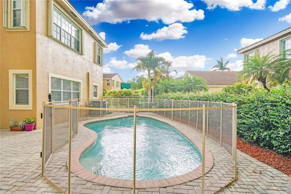 Gorgeous 4 bedroom, 2.5 bath, 2 car garage Pool home located in a cul-de-sac in the desirable gated community of Vizcaya. Featuring beautiful updated kitchen with granite, stainless steel appliances, dark wood cabinets, Tile floors on 1st level and spectacular real hardwood floors on 2nd level, elegant crown molding, amazing pavered patio & private pool with removable child safety fence, huge long driveway. HOA fee includes lawn service, cable, alarm and access to Eagle Trace Tennis center & playground!