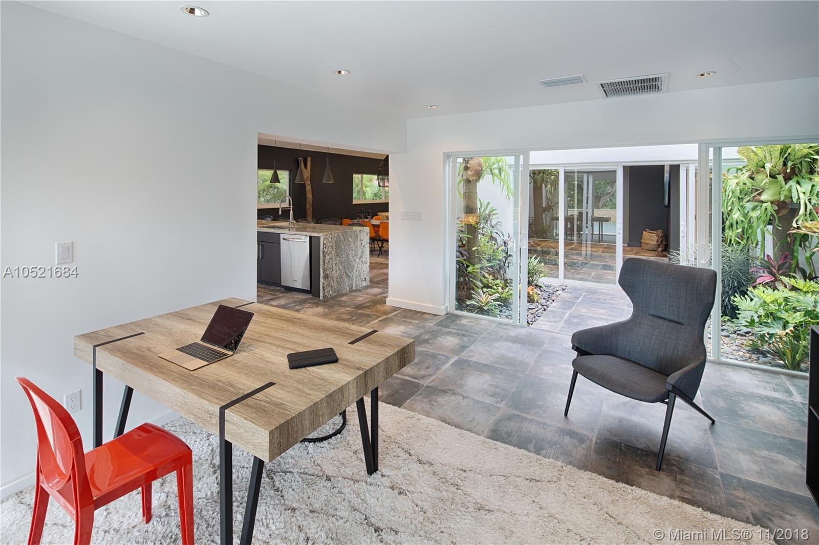 This modern masterpiece looks like it came right out of Architectural Digest magazine! Nestled in a mature canopy tree hammock, this splendidly-renovated statement compound features smart, subtle mid-century inspired design. A spacious, light-filled, modern marvel, delightfully and tastefully secluded from the public realm with intimate privacy. Entertainers will relish the indoor-outdoor living with an oversized custom waterfall pool, multiple entertainment patios, and the Instagram-ready one-of-a-kind open-air atrium at the heart of the home. Thoroughly updated with new roof, electrical, plumbing, European porcelain floors, kitchen and baths, Lutron lighting, impact windows and a spacious two car garage. All in Miami Shores' most prestigious neighborhood, east of Biscayne.