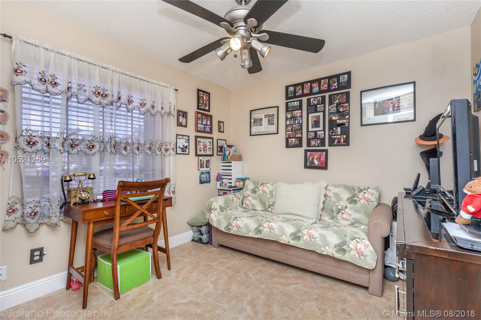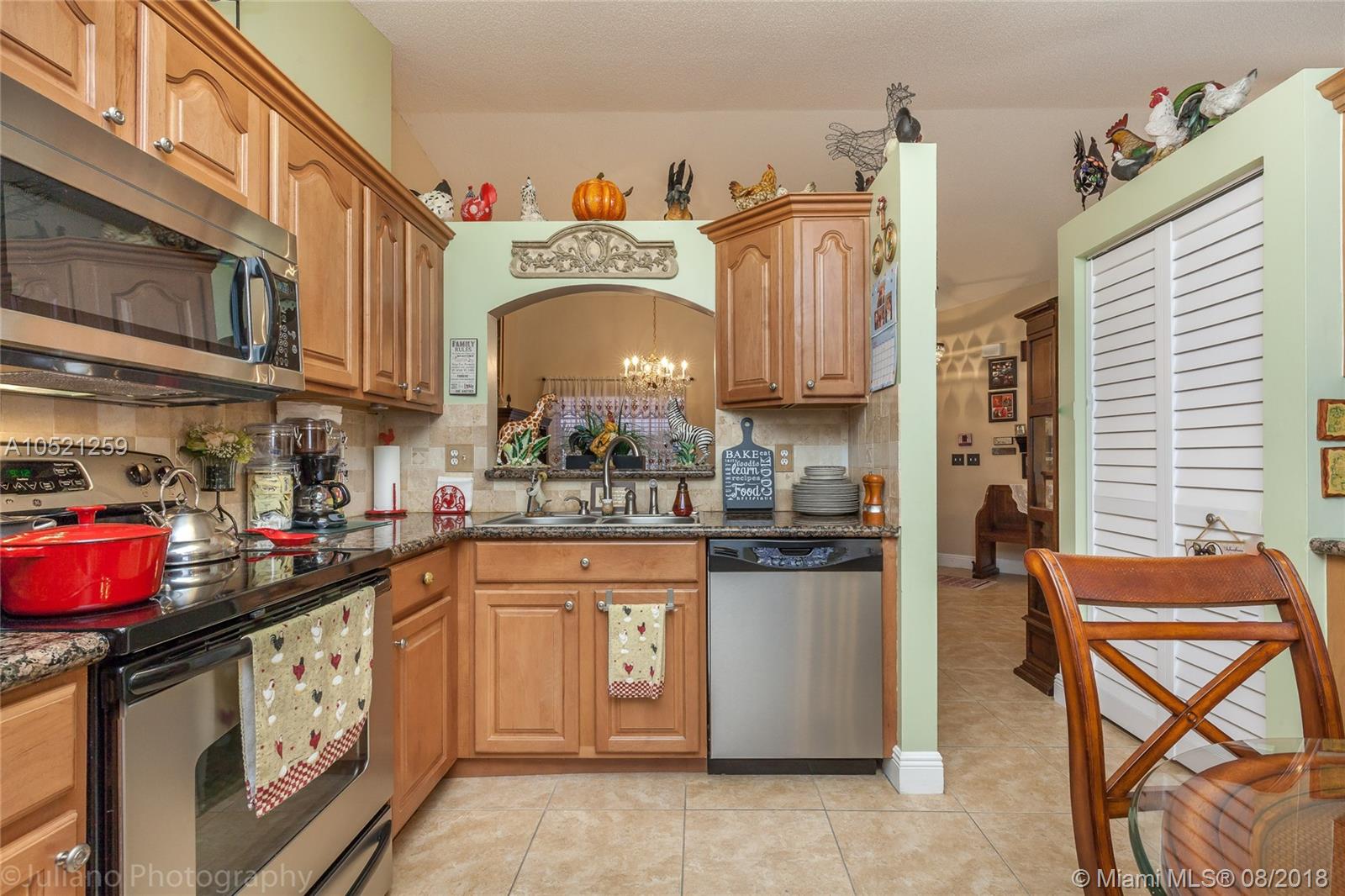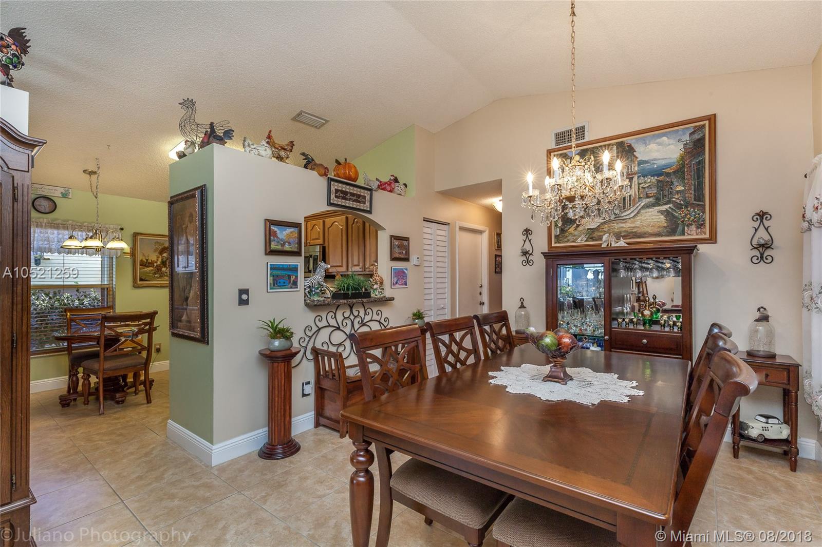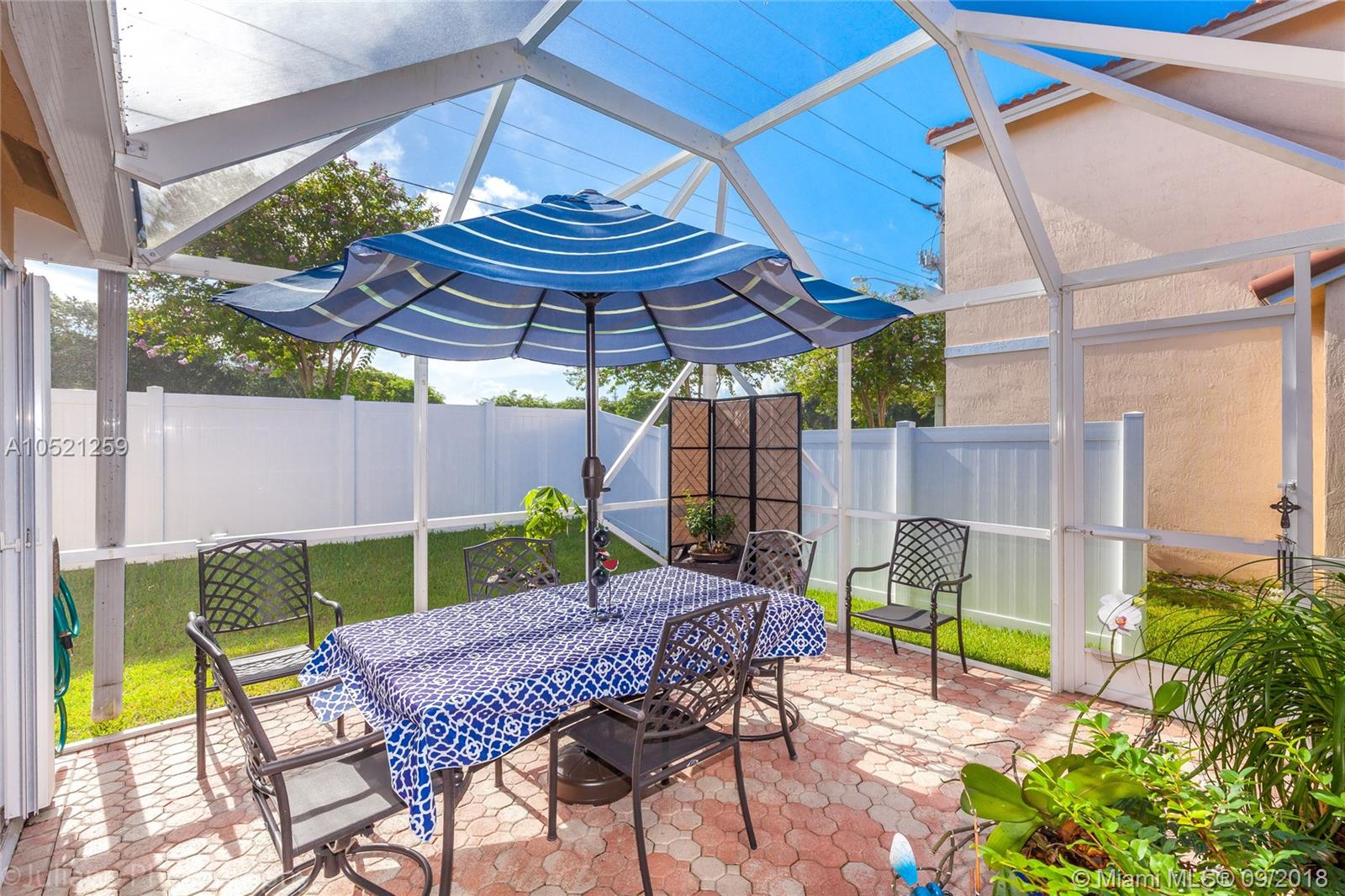 Beautiful 3/2 single story home. It features gorgeous new updated granite kitchen with 42' wood cabinets, pantry, and stainless steel appliances. New 18x18 tile floor through out and new wide baseboards. Freshly painted with pastel colors.Updated master bathroom with glass shower. Master bedroom w/his and hers closets. Recessing lights, high ceilings. 3 year old roof, accordion shutters, screened in patio and fenced backyard. Beautiful patio GREAT for entertaining.The very best of South Florida living!!!