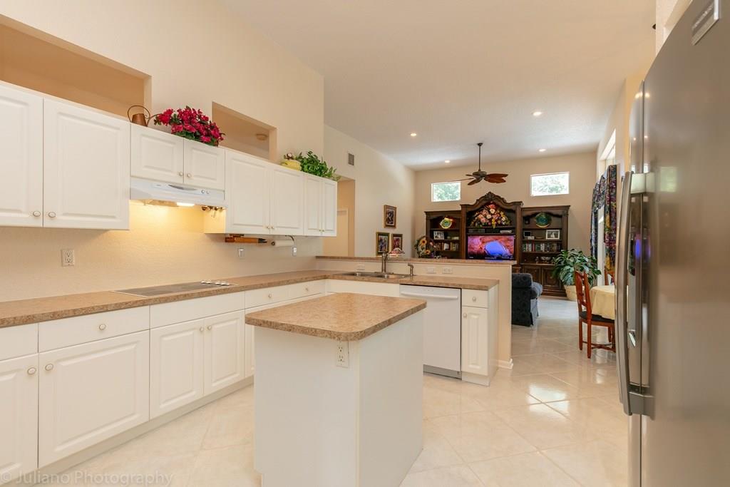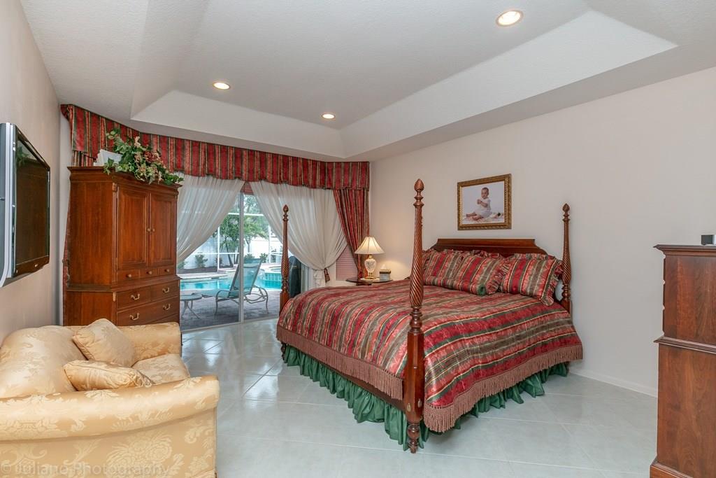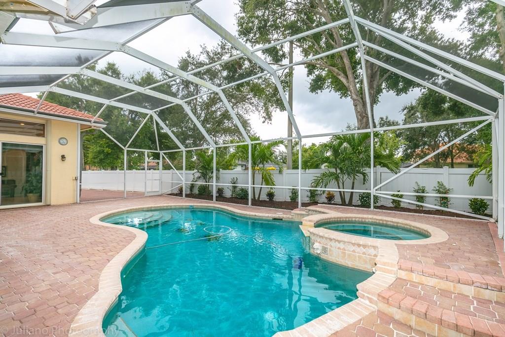 YOU DON'T WANT TO MISS OUT ON THIS ONE! This triple split bedroom plan is immaculate and move in ready! This Home features volume ceilings, tile throughout, upgraded bathrooms, large open kitchen, & upgraded landscaping. You will enjoy spending time on the large covered patio. Take a dip in the in pool and relax in complete privacy on your over sized screened in patio area. You will feel secure during hurricane season knowing this home has accordion hurricane shutters. This one is worth looking at!