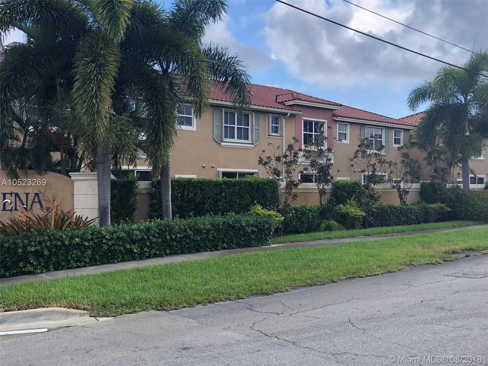 SIENA GATED COMMUNITY WITH POOL IN THE HEART OF HOLLYWOOD. CLOSED TO SCHOOLS, HOSPITALS, SHOPS, JUST MINUTES TO I-95, TURNPIKE, AND 20 MINUTES TO HOLLYWOOD BEACH. THIS CORNER UNIT BUILT IN 2008 IS A TURN KEY WITH 3 BED & 2.5 BATH. THIS TOWN HOME IS MOVE IN READY AND PRICE TO SELL. CERAMIC FLOOR TILE LIVING AREA AND ALL BEDROOM WOOD LAMINATED FLOOR, CUSTOM BUILT CABINET, FAMILY ROOM WITH WITH FORMAL DINING LARGE OPEN KITCHEN WITH 2015 BRAND NEW STAINLESS STEEL APPLIANCES WITH LARGE BREAKFAST AREA, FENCE REAR PATIO. LARGE MASTER BEDROOM WITH SHOWER & SEPARATE VANITY AREA WITH WALKING CLOSET, 3 BEDROOM UPSTAIR WITH 2 COMPLETE BATHS, HALF BATH ON THE FIRST FLOOR, BRAND NEW WASHER AND DRYER IN A SEPARATE LAUNDRY ROOM, HURRICANE SHUTTERS ALL HOUSE. QUIET NEIGHBORHOOD AND READY TO MOVE IN!