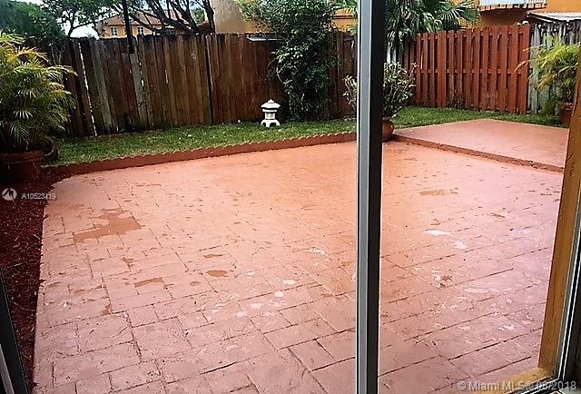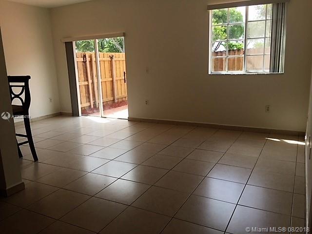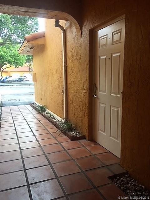 Corner unit Townhouse, single story (no stairs), 1,245 Sq.Ft, 3 bedrooms, 2 bathrooms, tile floors, kitchen with dining counter, family/dining room, 1 car garage converted to a room, but wall could be easily removed. Stackable Washer/Dryer. Dishwasher is not operable. Spacious fenced backyard with door to access back street/guess parking. Removable hurricane shutters. Lots of parking space close to the unit. Located in quiet area, closed to schools, shopping centers and easy access to I-75 and Palmetto Expressway.