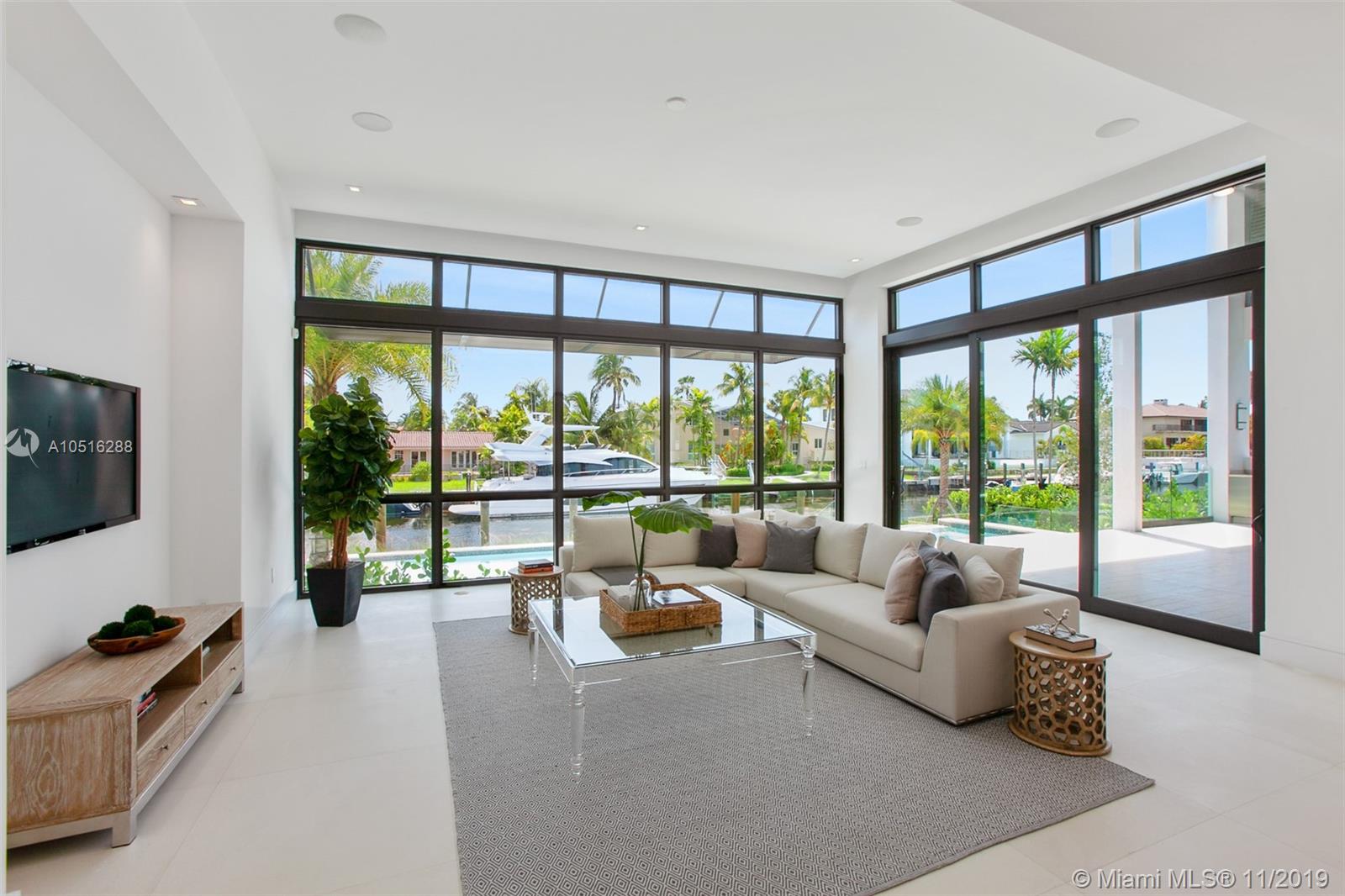 Modern Miami waterfront luxury scaled for gracious living. Thoughtfully conceived, elevated new-construction sited in an intimate, highly sought gated Gables enclave. Ingenious design maximizes every sq ft of lot space. Refreshingly understated interiors; elegant, airy floor plan masterfully flows & functions. Living & dining rooms offer water views. Gleaming Wolfe/Subzero kitchen w/wine cellar & pantry. Sublime master w/sumptuous bath, office, H&H walk-ins, sundeck & outdoor shower. All bedrooms en suite! Wow-factor exterior; kitchen/living/dining & fabulous pool/spa w/island seating & sundecks. New batter-pile fortified seawall; 70-ft dock; no bridges to bay. Rooftop deck affords city views. Built for the ages w/poured concrete, copper, limestone & oak. It’s all that and more!