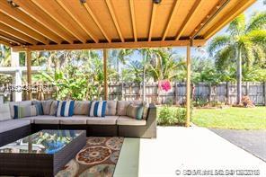 This spectacular ranch style home is truly a one of a kind gem!!! It features 2 bedroom, 2 bath, 1 car garage and RV/ boat parking, with upgraded interiors and lush fenced-in backyard. The kitchen is elegantly appointed with stylish cherry wood cabinets, granite counter tops and SS appliances. New roof 2017, tile floors throughout, accordion shutters, and updated bathrooms. The home provides additional outdoor storage, suitable for various motorized equipment, a gazebo perfect for placing a BBQ grill, and large covered patio perfect for outdoor entertaining. Washer and dryer are not included.