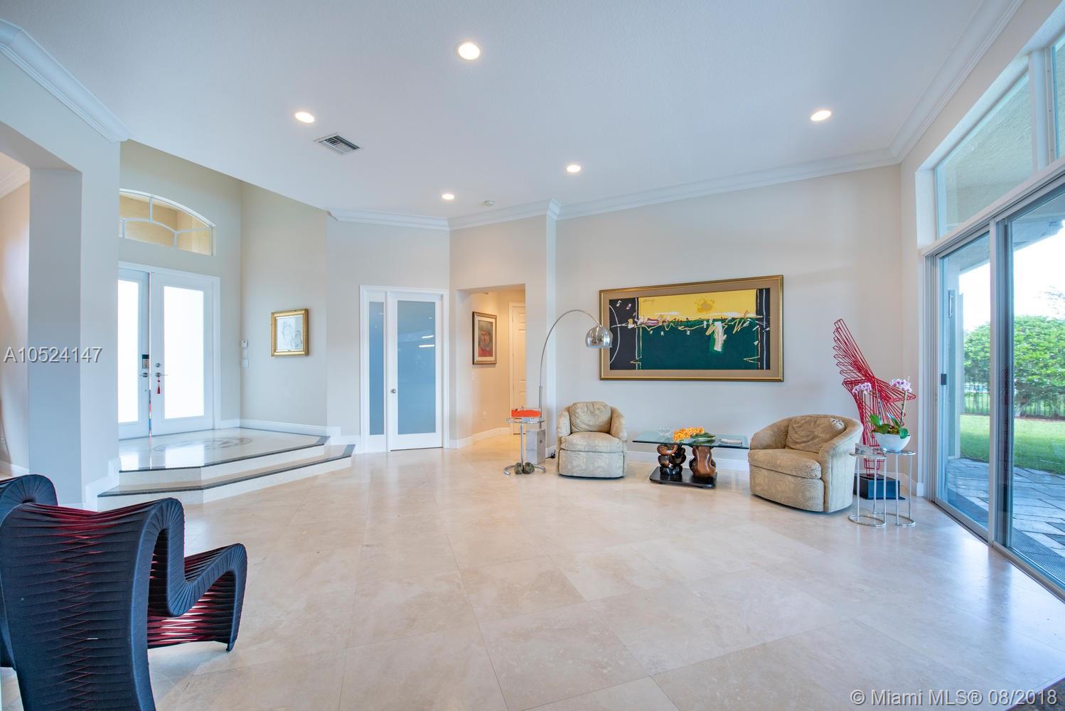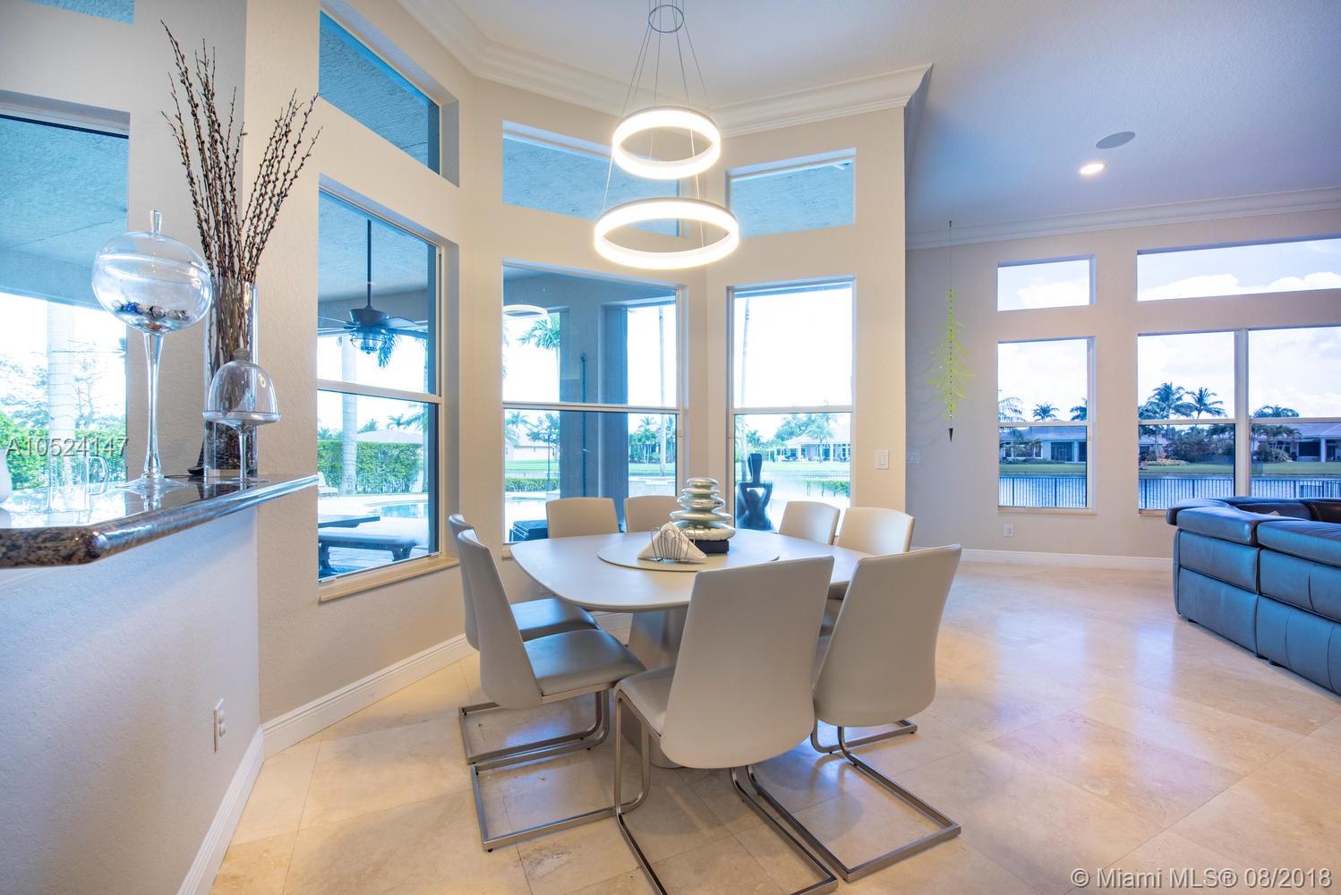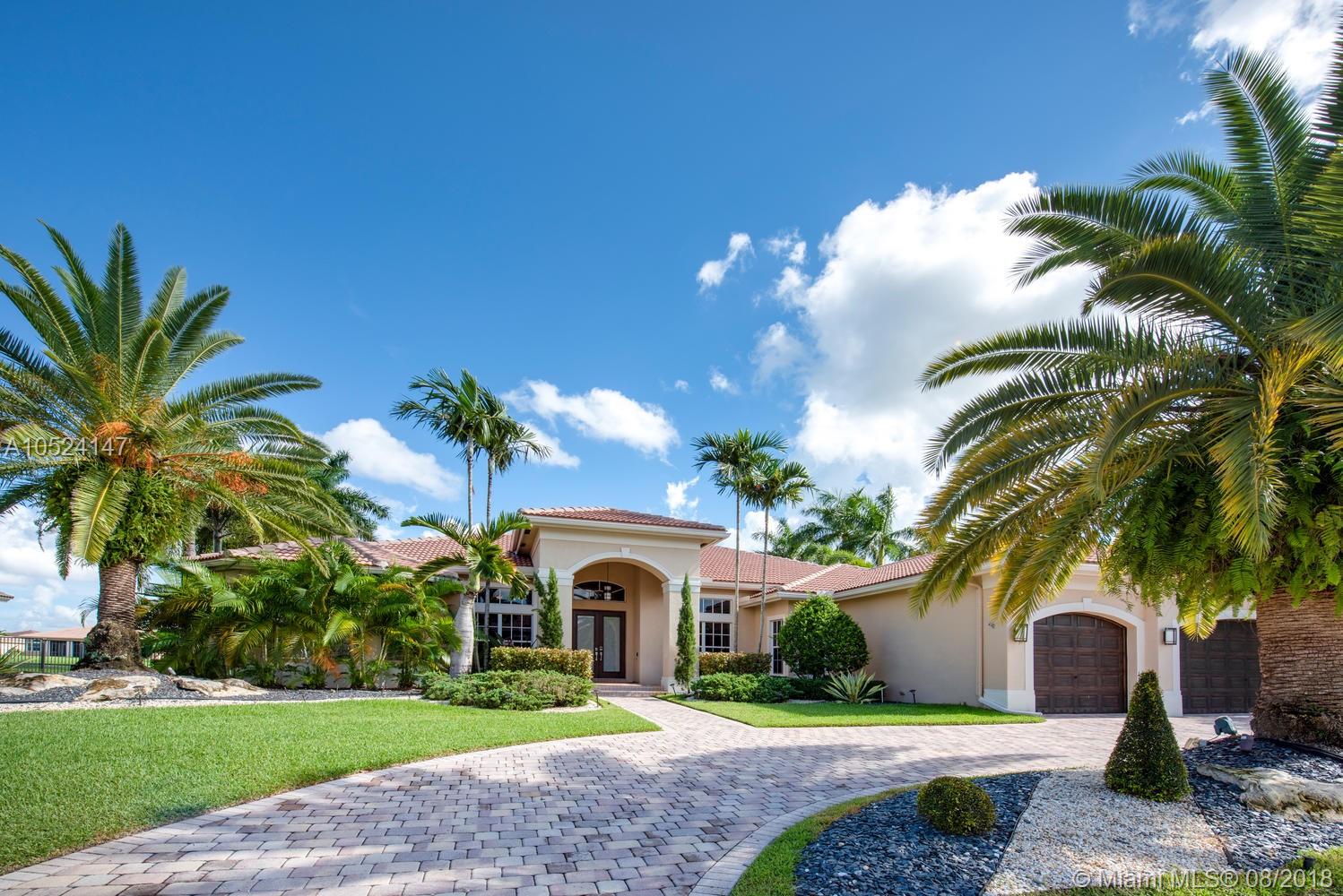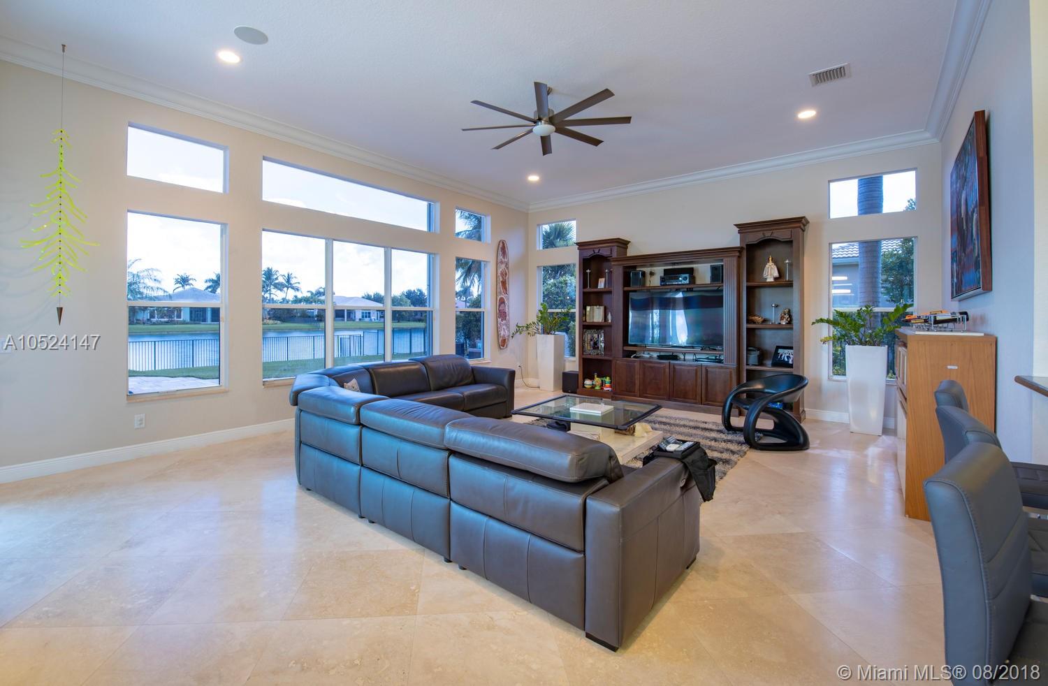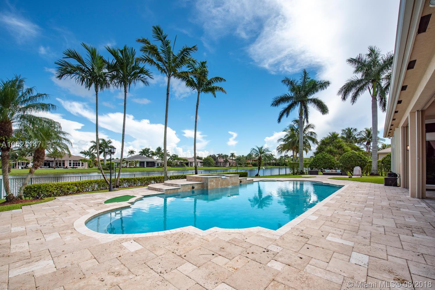 Panache at every turn. This magnificent home with contemporary looks and clean lines features 4 bedrooms plus Office/Den + 4 baths, Crown molding throughout, Double-door entry with tasteful marble floors in social areas & wood in bedrooms. Gourmet kitchen w/SS appliances & 42” wood cabinetry. Remarkable master bedroom w/tray ceiling, sitting area & a DRAMATIC WUAO walk-in closet, Upgraded bathrooms, manicured lawn surrounds resort-like, oversized pool & spa on a 35,078 SF lot. 3-car garage, circular driveway, Amazing panoramic lake views and much more!!!!! It's a pleasure to show! Don't miss it!