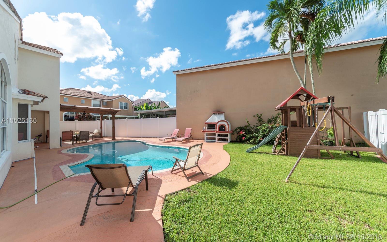 You’ll absolutely love this charming 2-story home and it’s priced for a quick sale. It’s contemporary design that is completely awe-inspiring, filled with captivating decor and elegance. This lovely home includes 4 BR, 2.5 BA, and a custom-made kitchen with stainless steel appliances, and a very stylish backslash adding a touch of luxury to the kitchen. The kitchen also includes a chef’s island overlooking the pool area and kid’s playground. The interior of the home, as well as the exterior, is absolutely stunning. The interior of the home includes tiled floors downstairs and Italian wood floors upstairs, as well as in the garage that has been converted and completely remodeled to be used as an extra room. Includes oven fire pizza and newer A/C.