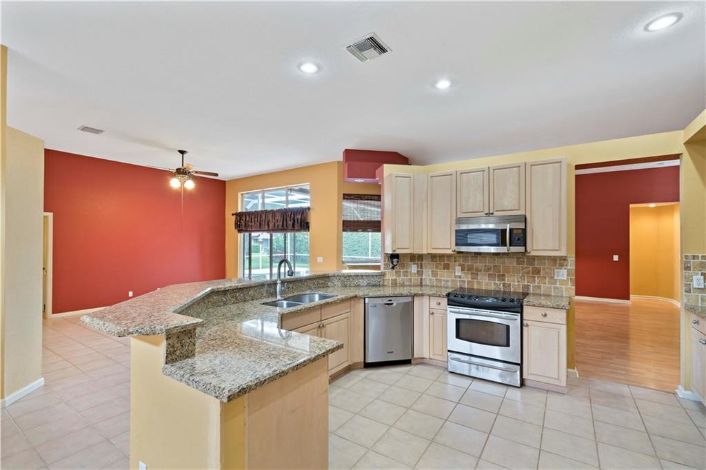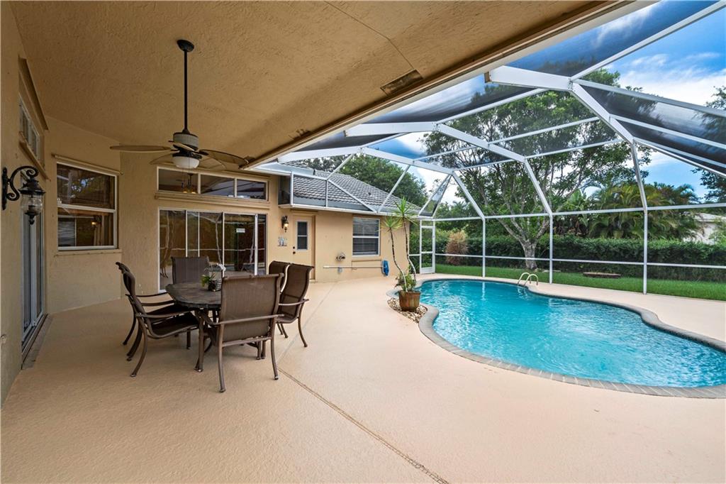 BACK ON MARKET WITH A BRAND NEW ROOF (2019')! This home is the entertainment home of the neighborhood! As you step foot in this beautiful home, your eyes gravitate out to the stunning screened pool & patio area. Kitchen upgraded w/granite & SS appliances. Extra features include a granite desk and bar area. Over sized master bedroom, master bathroom suite w/two sinks, tub, separate remodeled shower. Two walk-in, California type, closets. Split bedroom floor plan, three bedrooms on one side with a full cabana bathroom.Laundry w/extra cabinets.