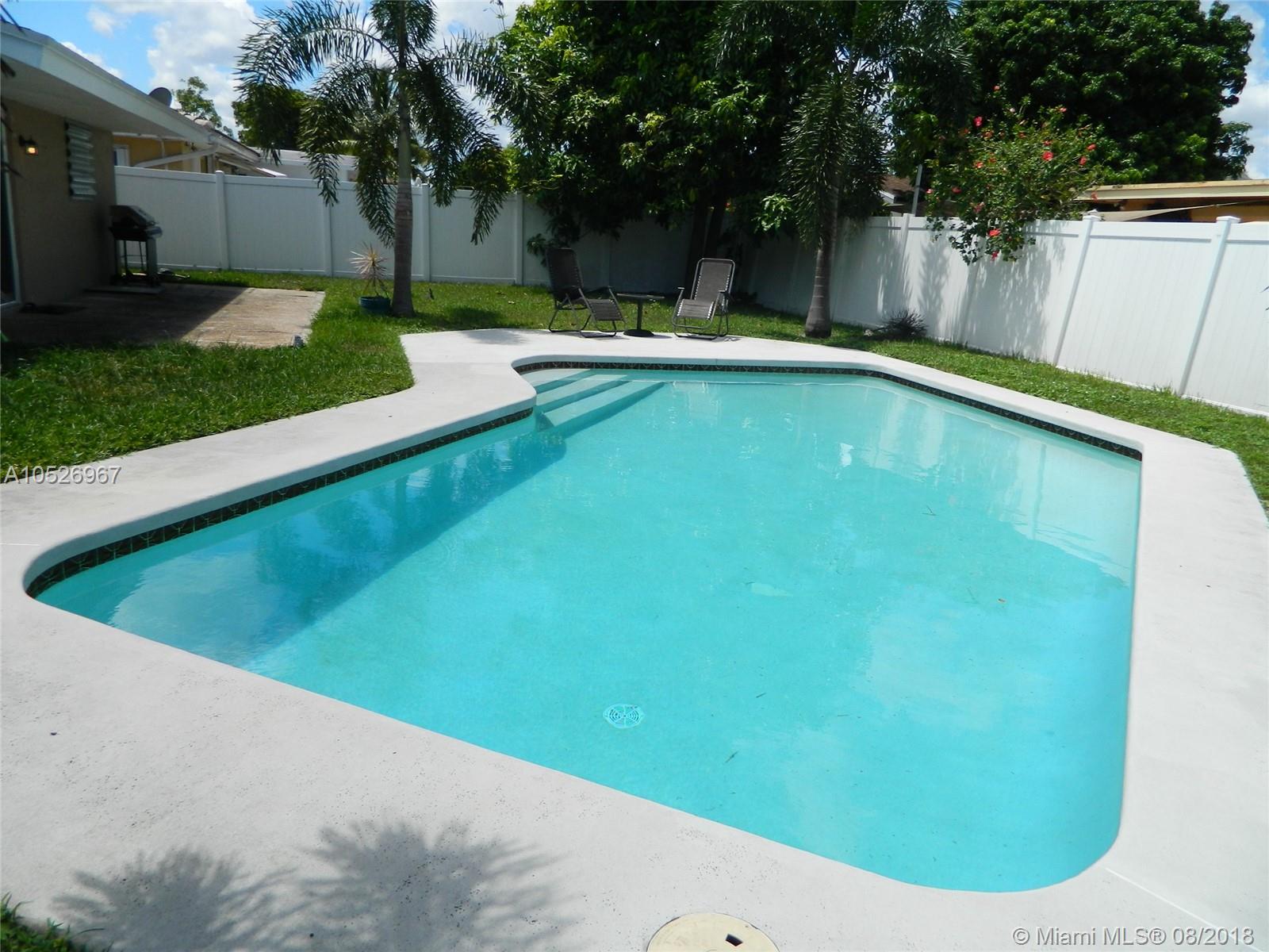 Beautifully renovated TRUE 4/2 with pool & garage in Palm Aire Neighborhood. Generous sized Kitchen has wood cabinets galore, granite, Gas stove, wood cabinets, newer stainless steel fridge, dishwasher & microwave. All 4 bedrooms have wood flooring & tiled thru out living. Impact glass sliding doors open to fenced in yard w/ ample room for entertaining guests. Well landscaped front yard has great curb appeal & accommodates 4 cars plus oversized garage. NEW ROOF in 2017, tankless hot water heater, NEST Thermostat, updated electrical system, hurricane garage door and house is wired for a generator for great CREDITS on 4 pt inspections. No homeowners ass. and close to Major highways, place of worship and shopping! Well priced & Buyers can save $1750 in closing costs - See Broker Remarks